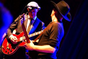 Der Swamp-Blues „On My Way“, kam meinen Präferenzen erneut entgegen, das fetzige von Gitarrist Skjerning angesagte„All I Want“ (fulminantes Risager-E-Solo) und das bläserlastige „Baby Please Don’t Go“ kamen im gleichen Dreier-Pack wie auf der aktuellen DVD. Risager lobte wieder in bemühtem Deutsch das ‚beste Publikum der Welt‘ und die schönste Location, in der er je gespielt hatte, wohl wissend, dass er diesen Spruch vermutlich schon bei zig anderen Auftritten losgelassen hatte. Welch ein Schelm, aber im Prinzip kommt er der Wahrheit, was das Piano betrifft, ja auch ziemlich nahe! Und so war dann heftige Swing Time beim furiosen Retroschunkler „Let The Good Times Roll“ angesagt, das dann auch einen richtig gelungen 2. Set abschloss. Die stürmisch eingeforderte Zugabe wurde dann mit dem zünftigen und vom Titel für diesen Anlass skurril anmutenden „Opener“ befriedigt.
