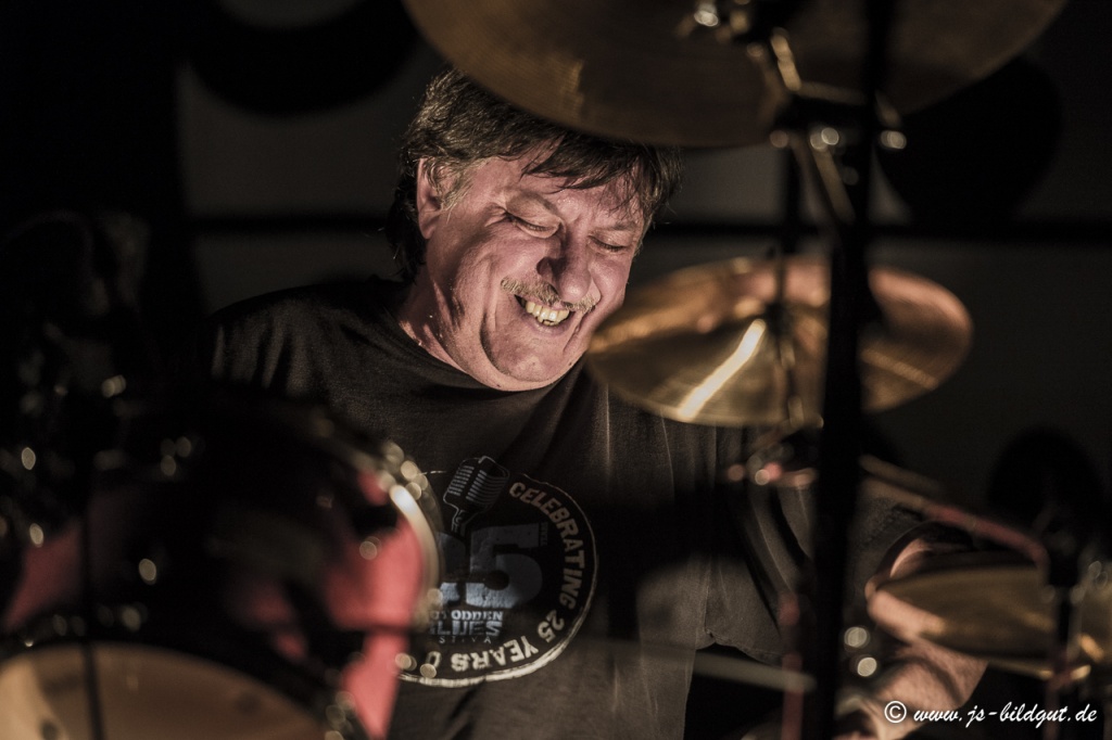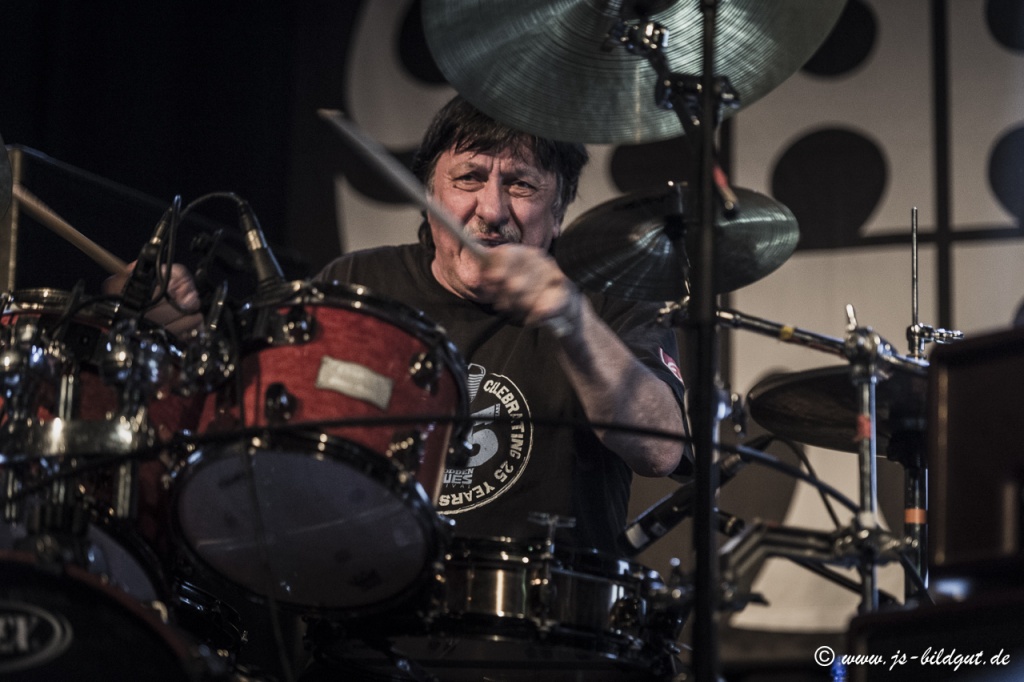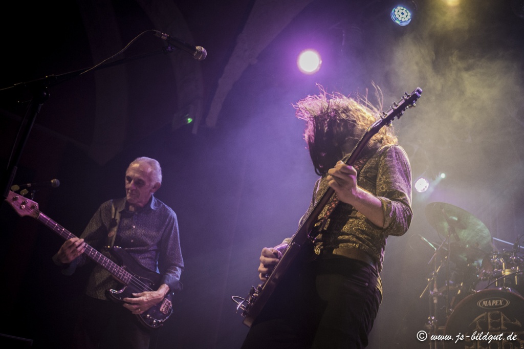 Allen voran natürlich der im Vergleich zu den übrigen Bandmitgliedern noch vergleichsweise jugendliche neue Frontmann Markus Bonfanti. In der Mitte des Sets gab es dann den Titel „Colin’s Thing“, ein neuer Track offenbar extra von Colin Hodgkinson geschrieben. Mit einem minutenlangen Bass-Solo, an dessen Ende es tosenden Applaus gab, spielte er sich in die Herzen der Zuhörer. Auch Ric Lee kam zu seinem Recht und performte in „The Hobbit“ ein schier endlos scheinendes Schlagzeugsolo. Ric Lee hat’s trotz seiner 71 Jahre immer noch drauf und gehört noch lange nicht zum alten Eisen! Das Abschlussstück bildete dann, wie kann es anders sein, das legendäre „I’m Going Home“.