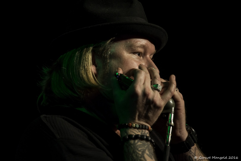 Harp-Spezialist Big Pete, alias Pieter van der Pluijm (dafür aber ein eher schwacher Sänger) und seine Mannen Sander Kooiman, Erkan Özdemir sowie dem kauzigen Drummer-Urgestein Willy Maes, hatten ihre aktuelle Live-CD „Live At BluesNow!“ im Gepäck. Sie präsentierten den Blues in all seinen Facetten von retro/traditional, groovig, slow bis rockig, wobei Petes Harp-Spiel und Kooimans ausgedehnte E-Soli im Vordergrund standen. Am Ende bewies der, auf die Siebzig zugehende Maes mit einem Schlagzeug-Solo, seine immer noch vorhandene Vitalität. Insgesamt eine akzeptable Vorstellung für den gediegenen Blues-Freund (der ja meist eigentlich akademisch bewandert und demnach politisch der wilden und aufmüpfigen 68er-Generation zugeneigt ist, es aber in Sachen Musik gerne schön traditionell und überschaubar hat…), aber auch eher eine Truppe für kleine rauchige Clubs.