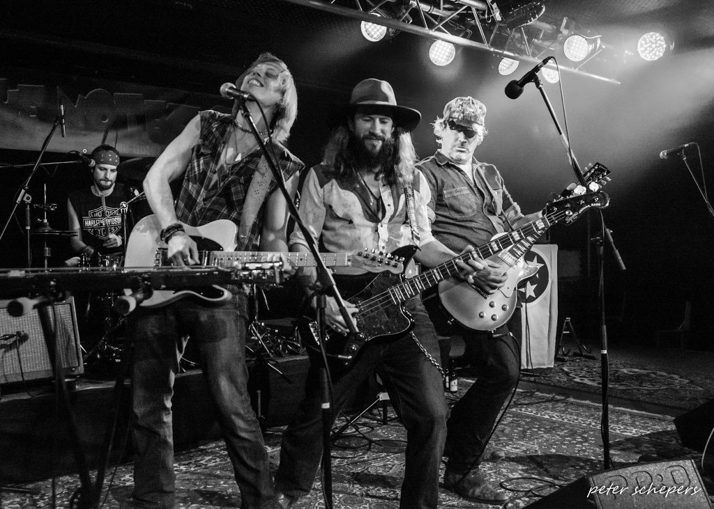 Mich persönlich interessierten natürlich die eigenständig kreierten Stücke des Quartetts am meisten. Auch die wussten allesamt zu überzeugen. „Whiskey On The Table“ (klassischer Southern Country Rock) , „Catfish & Titties“ (fetter Stampfer, Slide-Solo), mein Highlight des Abends „Blame The Bottle“ (wunderbar fluffiger melodischer (New) Country Rock, mit kurzem „Can’t You See“-Intermezzo) oder das wuchtige „Devil’s Playhouse“ (ein swampiger Southern Blues Rocker) hießen die Kostproben des ersten Sets, klasse hier zudem der alte, seiner Zeit durch die Osborne Brothers bekannte Blue Grass-Heuler „Rocky Top“, bei dem der starke Gitarrist Ethan Schaffner (eine Art Keith Urban-Typ, bis dato zunächst eine Telecaster bedienend) auch seine variable Spielfreudigkeit am Banjo (dazu auch mit Einsätzen an der Lap Steel) offerierte.