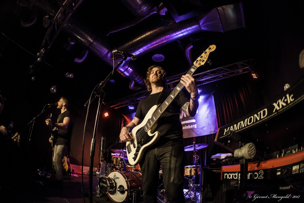 Mit einer Verspätung von knapp 25 Minuten stieg die Band mit dem rhythmisch groovenden „Let’s Go Upstairs“ in den zweigeteilten Gig ein. Sinnbildlich steht der Titel auch für den Weg des Protagonisten. Er will steil nach oben und angesichts dieser Leistung, klingt das alles anders als unrealistisch. Beim folgenden Stampfer „Win You Over“ stellte Ben im Bridge seine Mitstreiter erstmals vor.