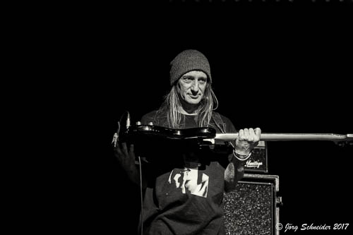 Sichtlich bester Laune betraten die drei Musiker mit etwas Verspätung, die wohl dem Andrang am Merchandise-Stand geschuldet war, gegen 20:15 Uhr die Bühne und legten vor ausverkauftem Haus zum Einstimmen, mit dem beschwingten Klassiker „Streamline“ vom 1967er Album „Crusade“ los, gefolgt von „Big Town Playboy“, einem neueren Song aus 2014. „Moving On“ vom gleichnamigen 1973er Werk klang in der derzeitigen Besetzung zwar immer noch sehr rhythmisch, konnte aber an die Originalaufnahme, sicherlich auch wegen den neuen Zusammensetzung der Band, ohne Sidegitarristen Rocky Athas, nicht heranreichen.