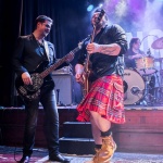 Nimmo, wieder traditionell mit schwarzem Hemd und rot-kariertem Kilt auf der Bühne, würde mit seiner bulligen Figur und den voluminösen, freiliegenden Waden, bei Unwissenden, vermutlich, statt als filigraner Gitarrist und Fronter, eher als schottischer Meister im Baumstammwerfen durchgehen. Musik-Kenner mögen ihn natürlich aufgrund von Variante 1.