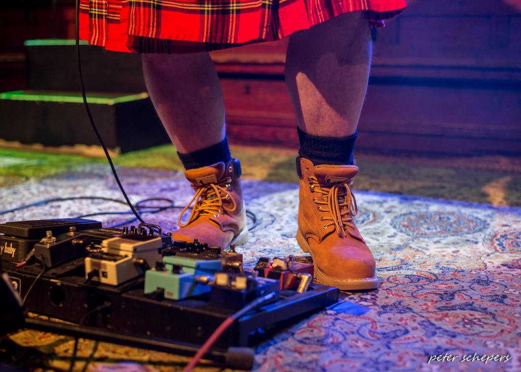 Nimmo, wieder traditionell mit schwarzem Hemd und rot-kariertem Kilt auf der Bühne, würde mit seiner bulligen Figur und den voluminösen, freiliegenden Waden, bei Unwissenden, vermutlich, statt als filigraner Gitarrist und Fronter, eher als schottischer Meister im Baumstammwerfen durchgehen. Musik-Kenner mögen ihn natürlich aufgrund von Variante 1.