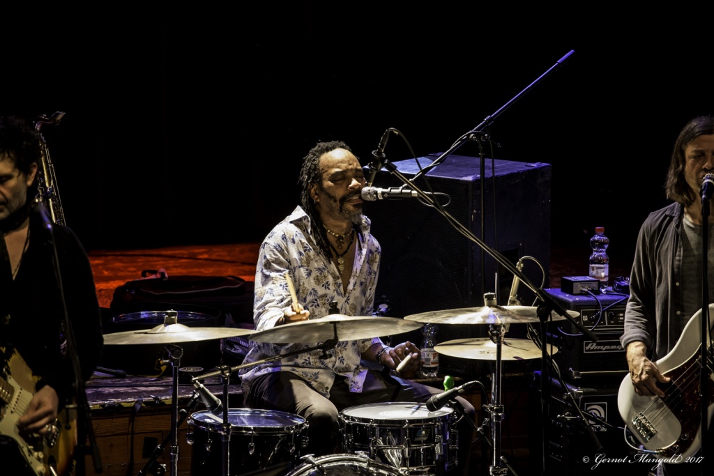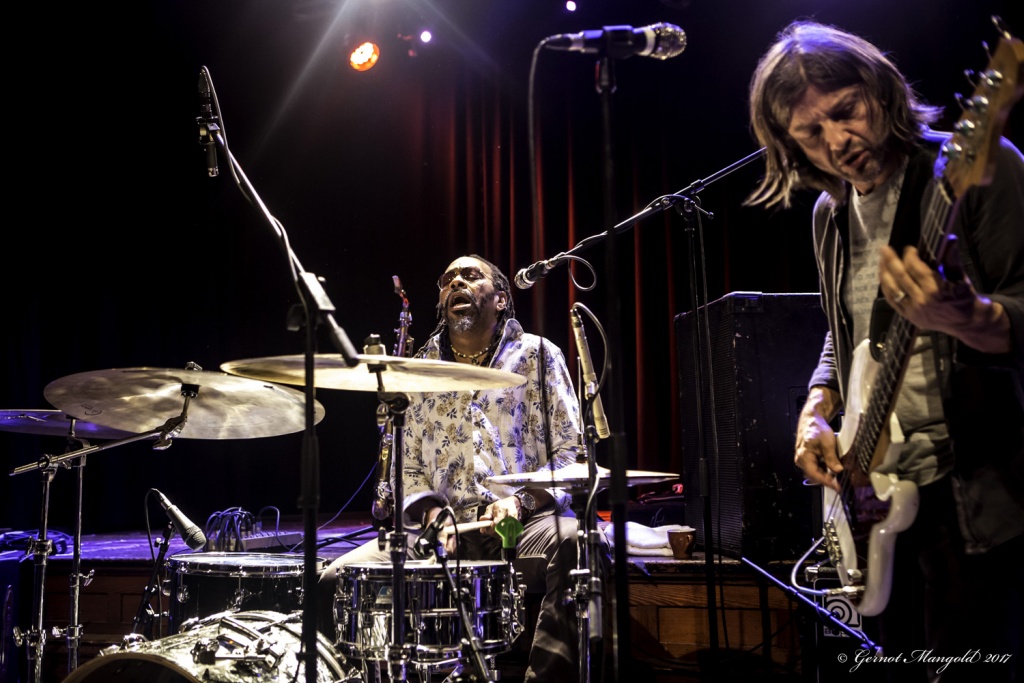 Am schwersten musste der wild-gelockte Adam Minkoff schuften. Der wechselte ständig zwischen E-Gitarre und Keyboard, zeichnete sich für Harmoniegesänge verantwortlich, wurde als Cole-Ersatz beim o. a. „Saharan Crossing“ beim Drumming hart rangenommen und bewies bei der ersten Zugabe, dem The Impressions-Cover „Choice Of Colors“, seine Frontgesangsqualitäten. Ein echtes Multitalent!