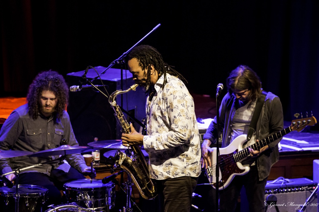 Die mussten dann auch ihre Multitasking-Fähigkeiten unter Beweis stellen: Basser Ted Pecchio, hatte neben seiner quirligen Fingerfertigkeit am Viersaiter, einige sporadische Vokaleinsätze, Ex JJ Grey-Schlagzeuger Anthony ‚AC‘ Cole, bediente neben seinem Parade-Instrument auch beim orientalisch anmutenden Instrumental „Saharan Crossing“ das Saxofon und hatte kurze Lead- und diverse Backgroundvocal-Einsätze.