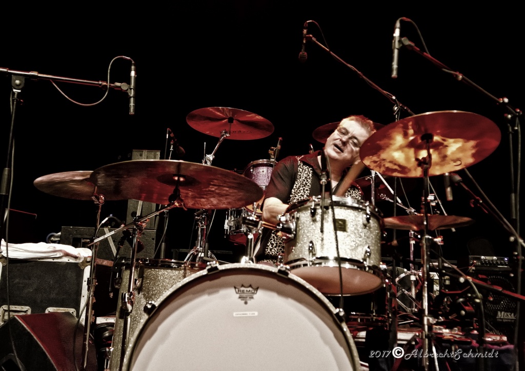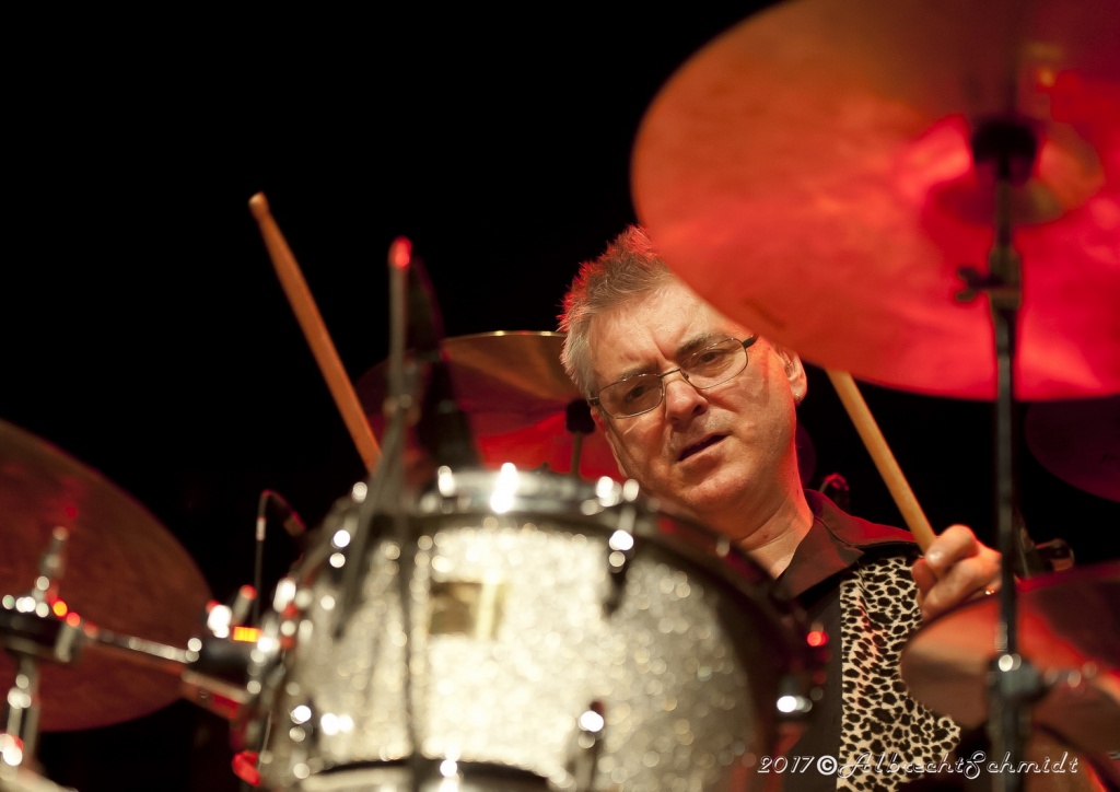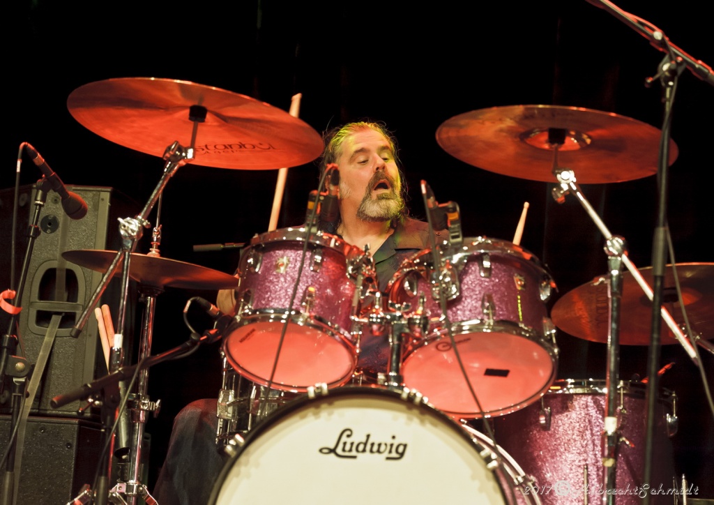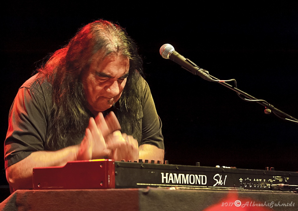 Angesichts des Erlebten (60 Kilo abgenommen, 8 Monate ans Bett gefesselt, musste Laufen und Sprechen wieder lernen, geschweige, sich das Gitarrenspiel wieder beizubringen), glich es schon einem Geschenk (für alle Beteiligten), ihn hier wieder mitreißend singen zu hören, als auch seine unzähligen filigranen E-Gitarren-Soli bestaunen zu können.