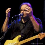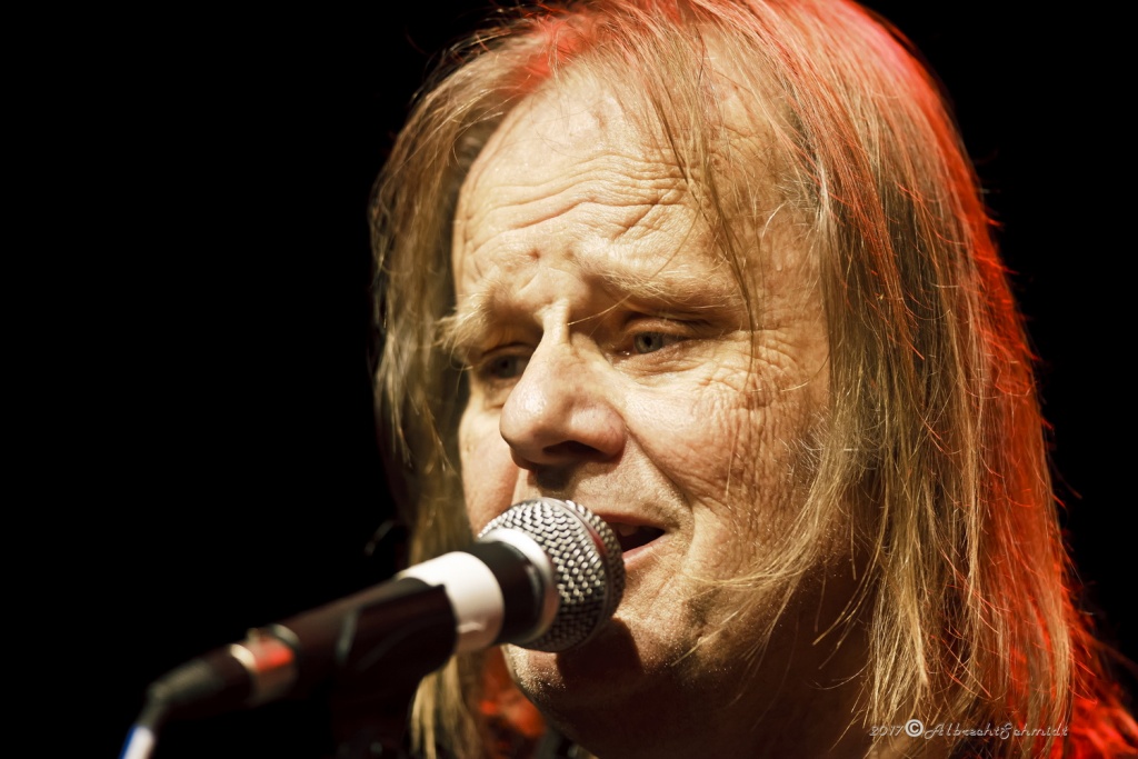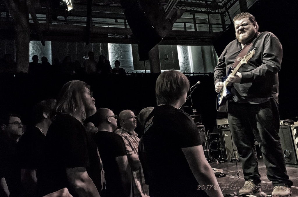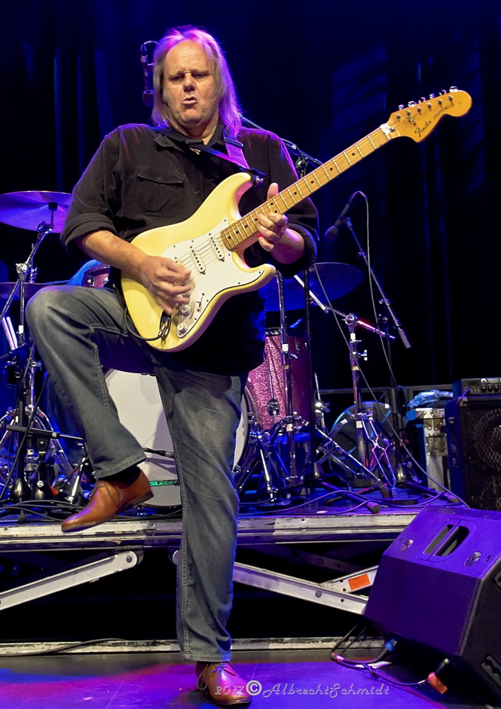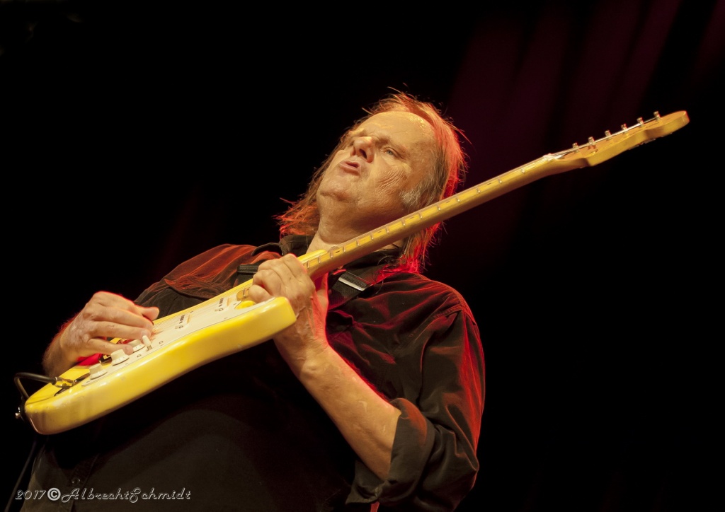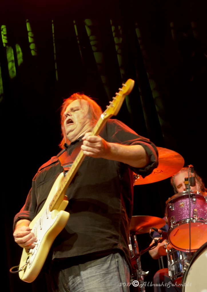 Walter Trout, dem die verbundenen Qualen und Erlebnisse im Zuge seiner Lebertransplantation 2014 deutlich im Gesicht eingemeißelt waren, brachte zunächst seine Finger mit einem quirligen Intro zum Opener „Help Me“ auf Betriebstemperatur. In der Folgezeit wurde er bei seinem etwas über zwei Stunden währenden, hochdynamischen Auftritt, seinem Status als Headliner des Abends, voll und ganz gerecht.