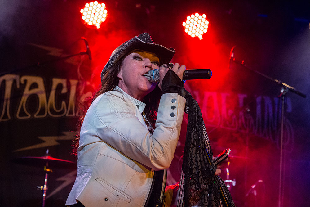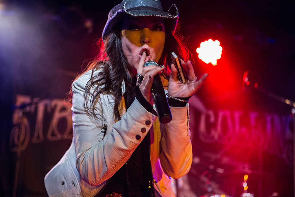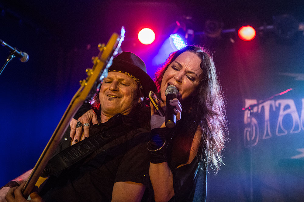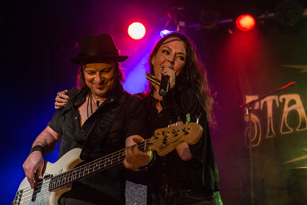 Trotz des schönen und ziemlich warmen Sommerwetters haben sich doch einige SC-Fans im Yardclub eingefunden, um sie mit ihrer Band auf der Bühne zu erleben. Im Club ist es heiß, gefühlte 40 Grad. Stacie betritt die Bühne, wie immer mit ihrem unverkennbaren Markenzeichen, diesem coolen alten Strohhut, wohl geformt und gebogen. Als ich sie in Bonn im Oktober 2013 gesehen habe, trug sie ihn auch schon.