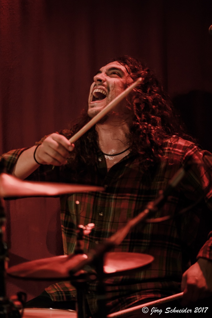 Perfekt eingespielt und voller Elan jamte die Band „Have A Cigar“. Die beiden Gründungsmitglieder Mason Keck und Schlagzeuger Seth Aldridge verstehen sich blind, was bei ihren Langhaarfrisuren sehr vorteilhaft ist. Bassist Will Sanders war nicht nur hier, sondern während des gesamten Konzerts in ständiger Bewegung und auch Tyler Schulz arbeitete kräftig, wie sein durchgeschwitztes T-Shirt bewies. Schön war, dass Sänger und Gitarrist Mason Keck immer wieder Kontakt zum Publikum aufbaute und auch physisch die Nähe zu ihm suchte. So stellte er sich bei seinen Gitarrensoli oft an den Bühnenrand und stieg auch zweimal von ihm herunter, sodass man sein filigranes Wirken unmittelbar beobachten konnte.