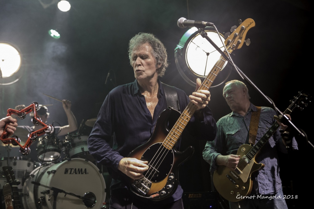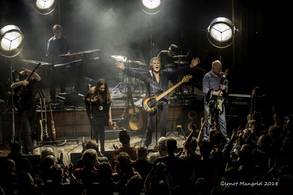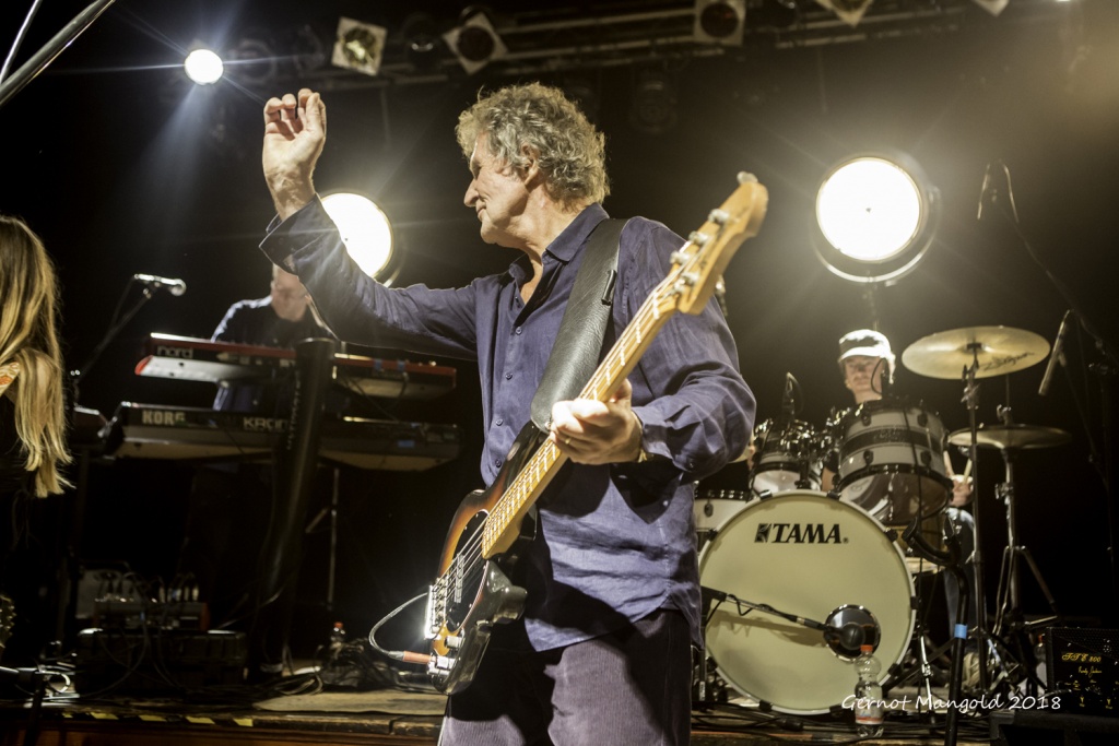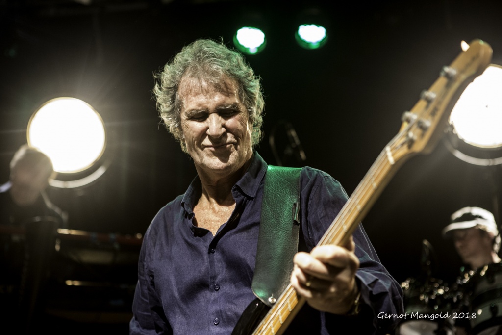 Auch die vielseitige Gastsängerin Hannah Robinson war nicht nur ein optischer Blickfang, sondern brachte mit ihren weiblichen Harmoniegesängen eine differnzierte Note in die Stücke, besonders was die altbekannten Straits-Sachen anbelangte. Leader John Illsley führte ohne den auf sich selbst fokussierten Leader zu geben, sang vielleicht nicht ganz mit der Markanz in der Stimme eines Mark Knopflers, aber sehr solide, und beackerte seinen Bass noch nach guter alter Zupfart.