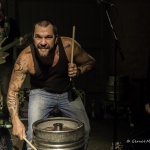 Ein weiterer Höhepunkt des ersten Konzertteils war eine Drummeinlage aller Beteiligten, die mit einer Trommel sowie den beiden anfangs erwähnten Bierfässern gebracht wurde. Dabei umspielten die Musiker wie im Kreislauf die drei Instrumente und warfen sich am Ende, als jeder seinen Platz hinter einem Instrument gefunden hatte, über faste eine halbe Minute lang, die Drumsticks während der Performance zu. Die Zuschauer waren begeistert!