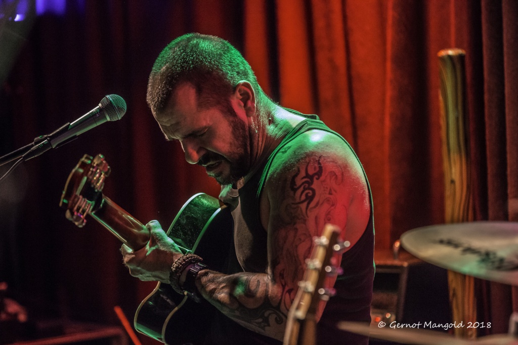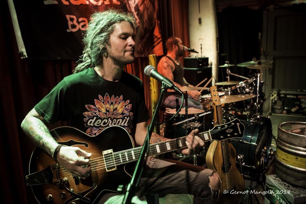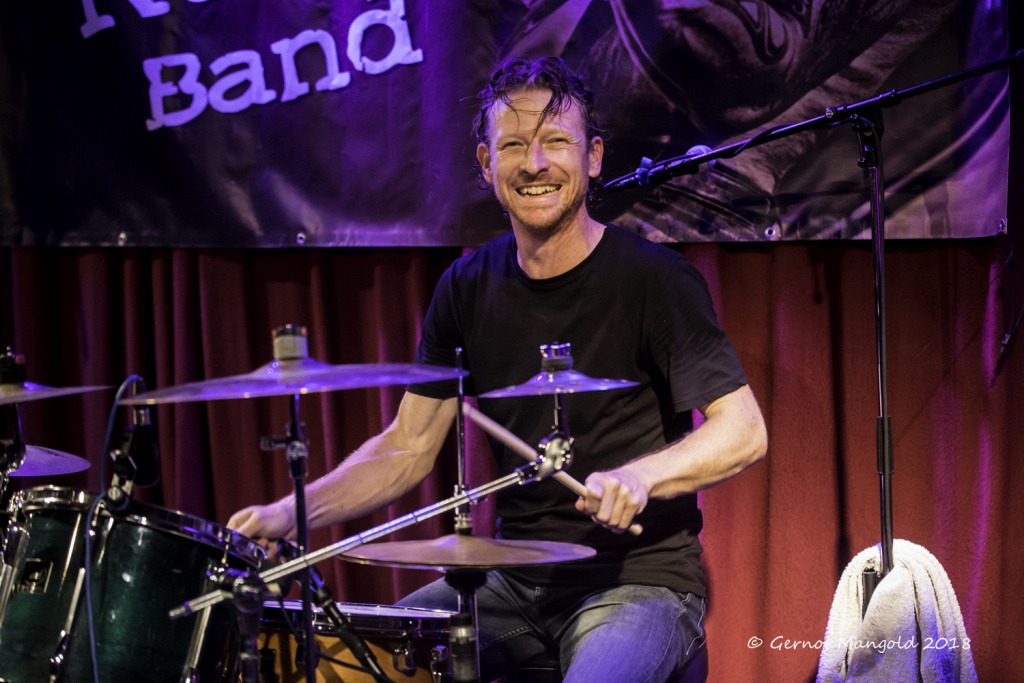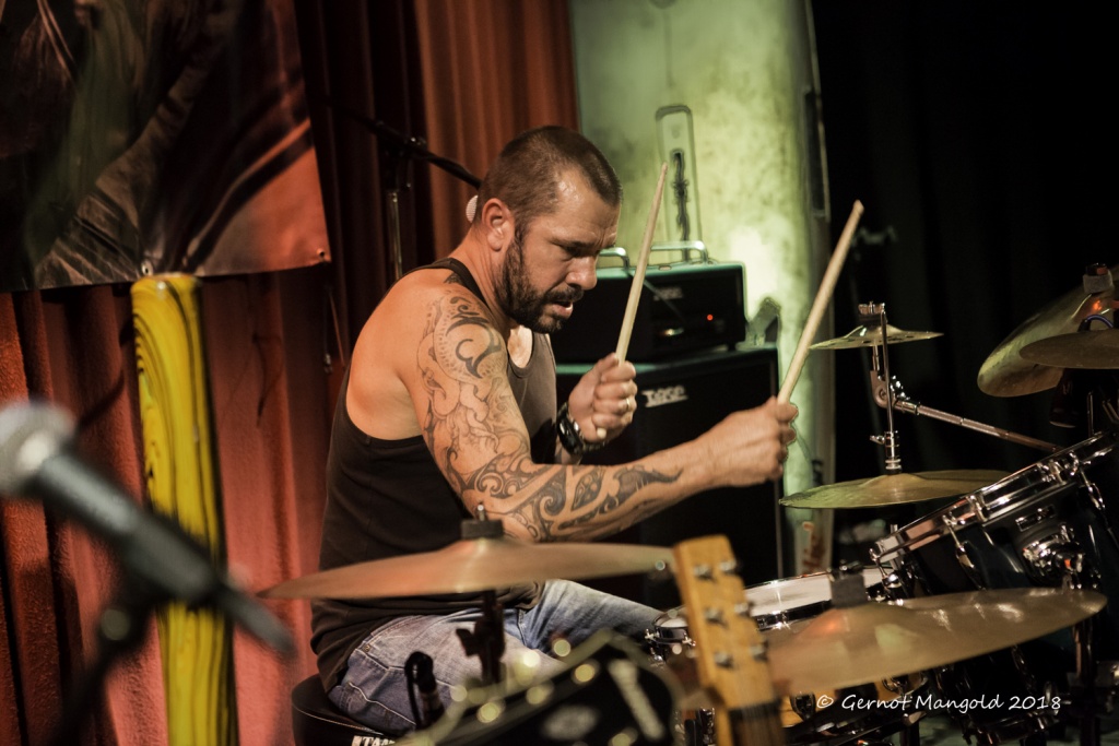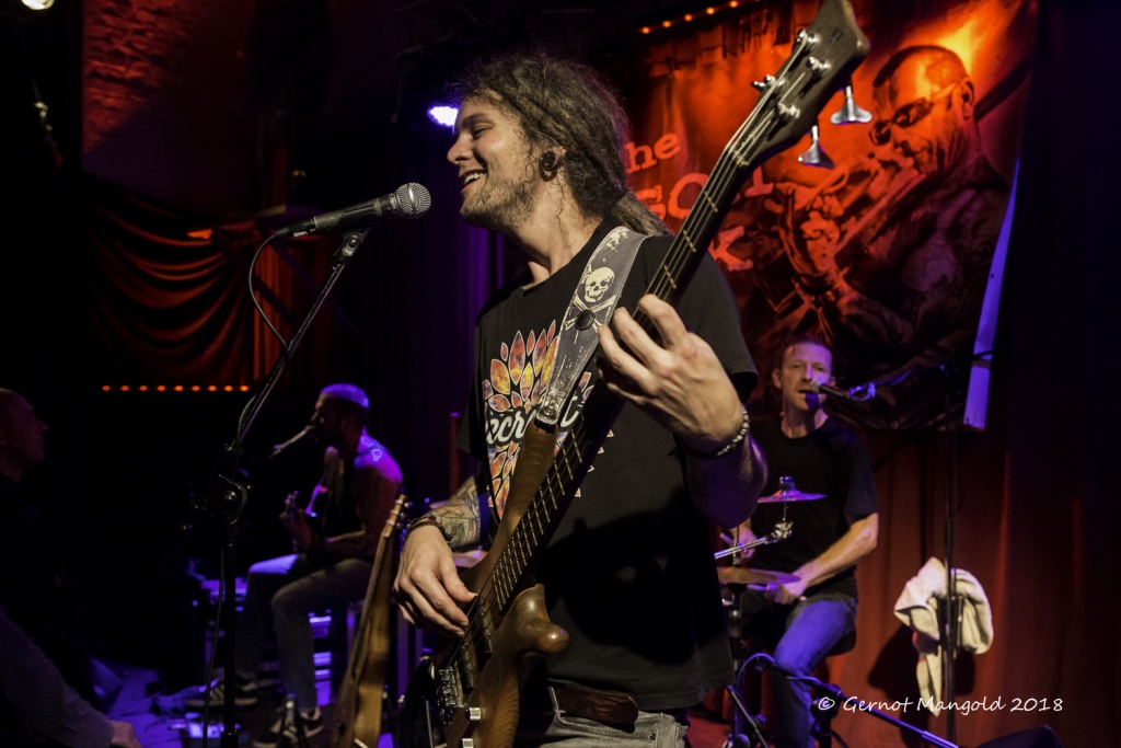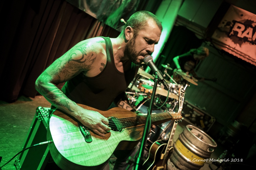 War es Roots, war es Blues, war es Punk, war es Rock? Alles in einen Sack gepackt, einmal durchgemischt und heraus kam der typische Stil der Mason Rack Band, an dem Liebhaber verschiedenster Musikgenres Spaß haben können. Die tiefe, ungehobelt kratzige Stimme erinnerte zum Teil an Joe Cocker, Roger Chapman, aber auch zum Teil an den Gesangsstil von Billy Idol. Interessant, war der Grundrhythmus von „Naughty Girl“, aus dem die Band jederzeit in den legendären Klassiker „Personal Jesus“ von Depeche Mode hätte überleiten können. Bei „Hard Goodbye“ zeigte die Band, dass sie auch langsame, melancholische Roots-/Bluessongs authentisch präsentieren kann.