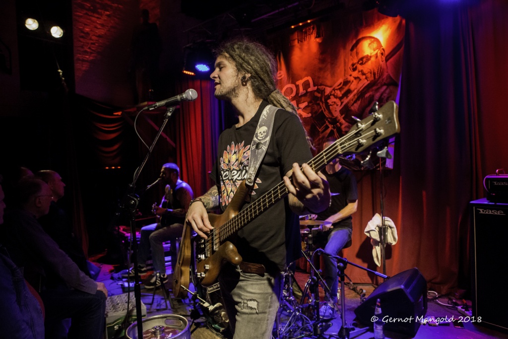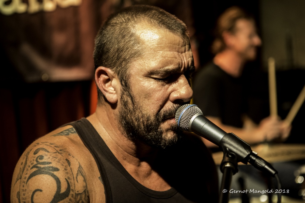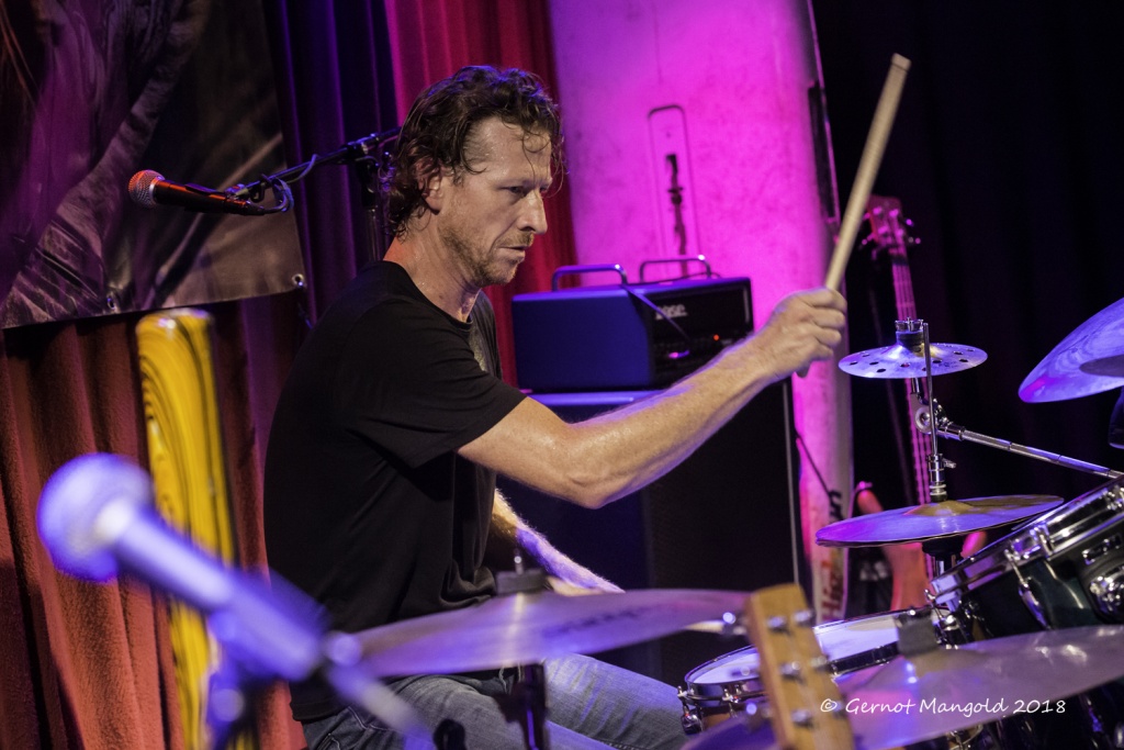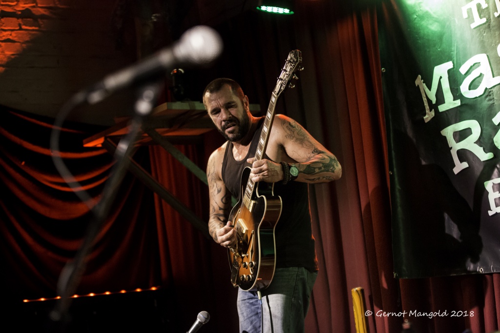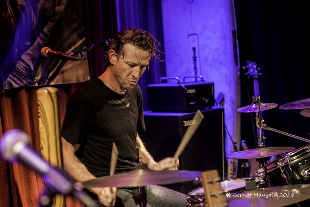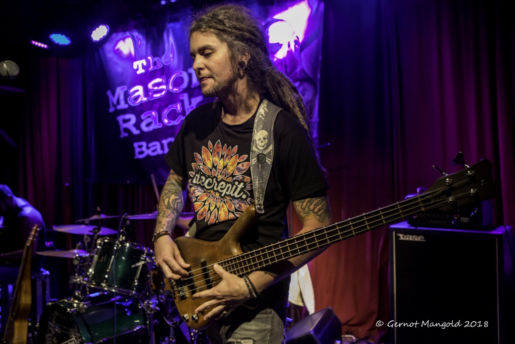 War es Roots, war es Blues, war es Punk, war es Rock? Alles in einen Sack gepackt, einmal durchgemischt und heraus kam der typische Stil der Mason Rack Band, an dem Liebhaber verschiedenster Musikgenres Spaß haben können. Die tiefe, ungehobelt kratzige Stimme erinnerte zum Teil an Joe Cocker, Roger Chapman, aber auch zum Teil an den Gesangsstil von Billy Idol. Interessant, war der Grundrhythmus von „Naughty Girl“, aus dem die Band jederzeit in den legendären Klassiker „Personal Jesus“ von Depeche Mode hätte überleiten können. Bei „Hard Goodbye“ zeigte die Band, dass sie auch langsame, melancholische Roots-/Bluessongs authentisch präsentieren kann.