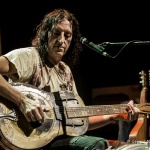 Pünktlich um 20:30 betrat Ashton alleine die Bühne, um nur mit einer Bassdrum und verschiedensten Gitarren, Nomen est Omen, die aktuelle Platte „Solo Electric“ in einem etwa 45-minütigen Set vorzustellen. Sehr schnell sprang der Funke des gut gelaunten Ashton, der sich nicht von der geringen Resonanz beirren ließ, auf die Besucher über. Er zeigte seine spielerische Bandbreite mal slidend, mal bluesig oder rockend.