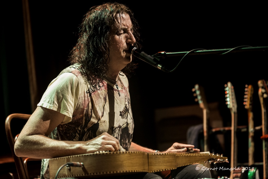 Der im Ruhrgebiet scheinbar eher unbekannte Gwyn Ashton machte im leider wenig besuchten Musiktheater Piano Halt, um sein aktuelles Album „Solo Electric“ vorzustellen. Dabei ist der in Wales geborene, schon in der Kindheit nach Australien ausgewanderte Ashton, kein Newcomer im Musikgeschäft. In den 80er Jahren spielte er im Vorprogramm von Rory Gallagher, dessen Wege er später auch immer wieder kreuzte. So spielte er 2001 in der Band of Friends zum Gedenken an den leider zu früh verstorbenen Iren.
