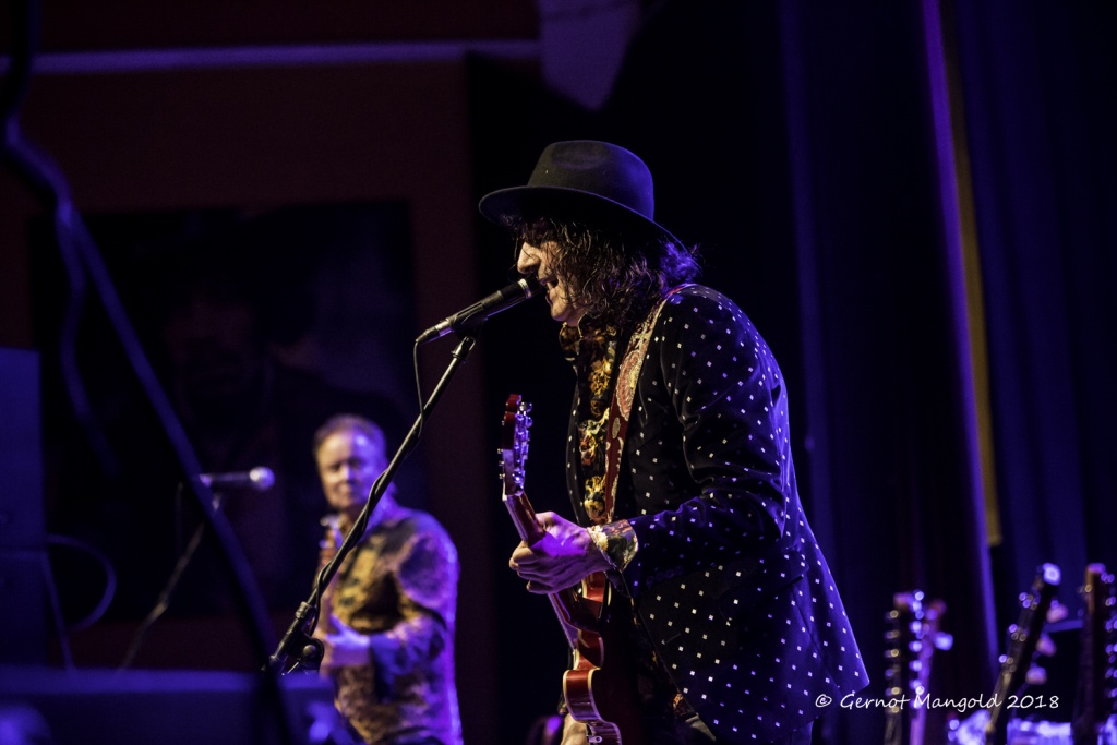 Neben Eigenkompositionen der letzten Jahre streute er auch einige Coverstücke ein. Wie schon im Vorfeld beschrieben, war fast durchgehend der Bluesstil der Generation Gallagher zu spüren und die Stimmung im Publikum war bestens, da sie große Gitarrenkunst geboten bekamen. Der auf einem großen Bild neben der Bühne hängende Jimi Hendrix, hätte mit Sicherheit auch seine Freude an dem Treiben auf der Bühne gehabt.