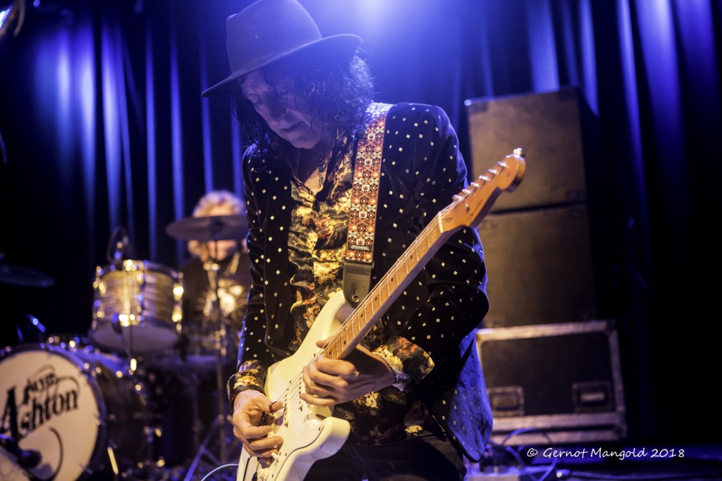 Nach einer etwa 15-minütigen Pause betrat Ashton dann, begleitet von seiner Band Chris Sharley an den Drums und Peter ‚Boom Boom‘ Beulke am Bass, die den ersten Set aus dem Publikum betrachtet hatten, die Bühne, um für noch einmal knapp 75 Minuten, seinen Powerblues hinzulegen. Dabei gab er seinen beiden Mitstreitern, wie es bei den guten alten Rockbands Gang und Gebe ist, die Möglichkeit, ihre spielerische Klasse in längeren Soli zu beweisen.