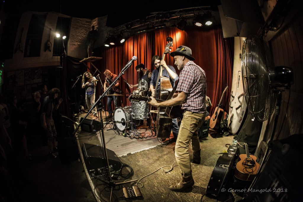 Bestens gelaunt, brachten das Quintett innerhalb kürzester Zeit, die Rampe zum Kochen. Mit Fiddle, Banjo, Kontrabass, Gitarre und einem, zu großen Teilen aus verschiedensten Dosen hergestellten Schlagzeug, welche der Drummer sich umgeschnallt hatte (er absolvierte das ganze Konzert im Stehen), wurde schnell für eine brodelnde Stimmung gesorgt.