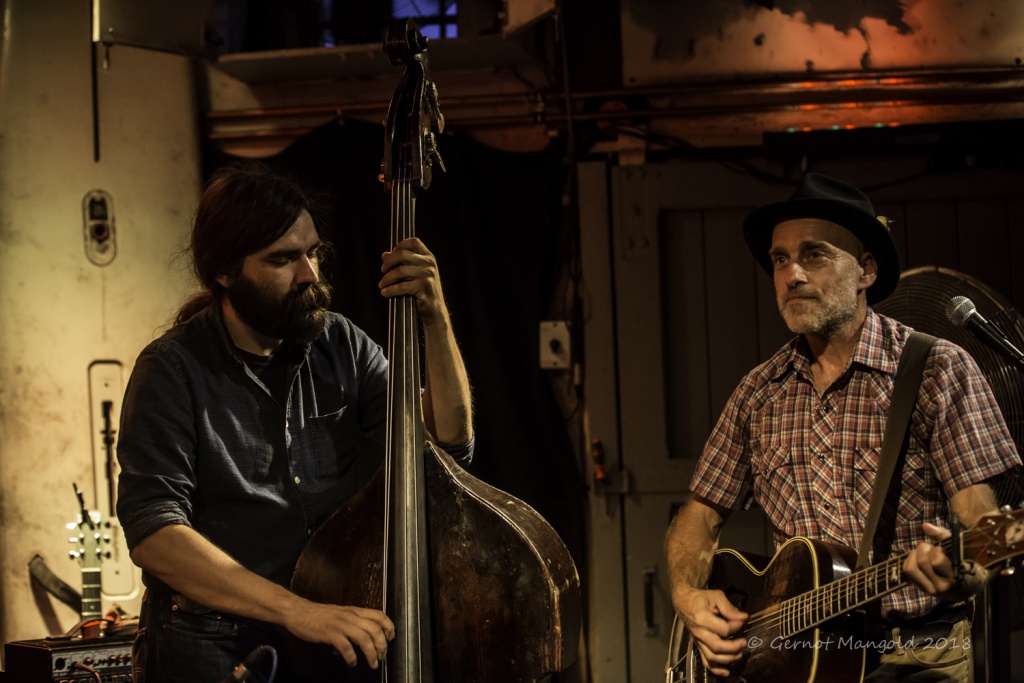 Bei mehreren Tracks konnte auch sein Fiddlespieler beweisen, dass er gesangstechnisch überzeugen kann, wobei er fast die ganze Zeit leicht tänzelnd sein Instrument bearbeitete. Auch der Akteur am Banjo durfte einen tragenden Gesangspart übernehmen. Mit einem Wolfsjaulen bei – nomen est omen – „Wolfs Howling“, leitete er seinen Part ein. Die Rhythmussektion samt Bass und dem Schlagzeuger, wenn man dem selbstgebauten umgehängten Instrument damit gerecht wird, sorgten für die nötige Fülle der Songs.