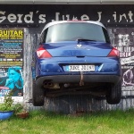 Nach 3 ½ Stunden problemloser Fahrt (vom Navi – oder Fahrer mal abgesehen) erreichte der Vierer das Ziel irgendwo im Nirgendwo. Das Headquartier von Gerd – auch liebevoll und augenzwinkernd ’Gerds Juke Joint’ genannt – kam zunächst wenig spektakulär rüber (mit Ausnahme eines durch die Wand geknallten Autos), was sich im Laufe des Wochenendes aber noch gehörig ändern sollte.