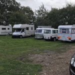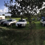 Also … wohin mit dem Caravan? Ganz einfach … quasi in Gerds „Garten“ … bloß keine Obstbäume beim rangieren beschädigen! Erste Bullies, Wohnmobile und Caravans waren auch bereits vor Ort. Nun noch schnell vor dem drohenden Regen das rollende Schlafklo vernünftig ausgerichtet, Vorzelt enttüdelt und unfallfrei aufgebaut, die Mistral-Sturmverspannung ob der drohenden Nordwinde angebracht, Stühle und Tische aufgeklappt, den Bluetooth-Krawallmacher in Stellung gebracht und schlussendlich die Kühlbox geöffnet … das Joldelunder Festival der etwas anderen Art konnte beginnen!