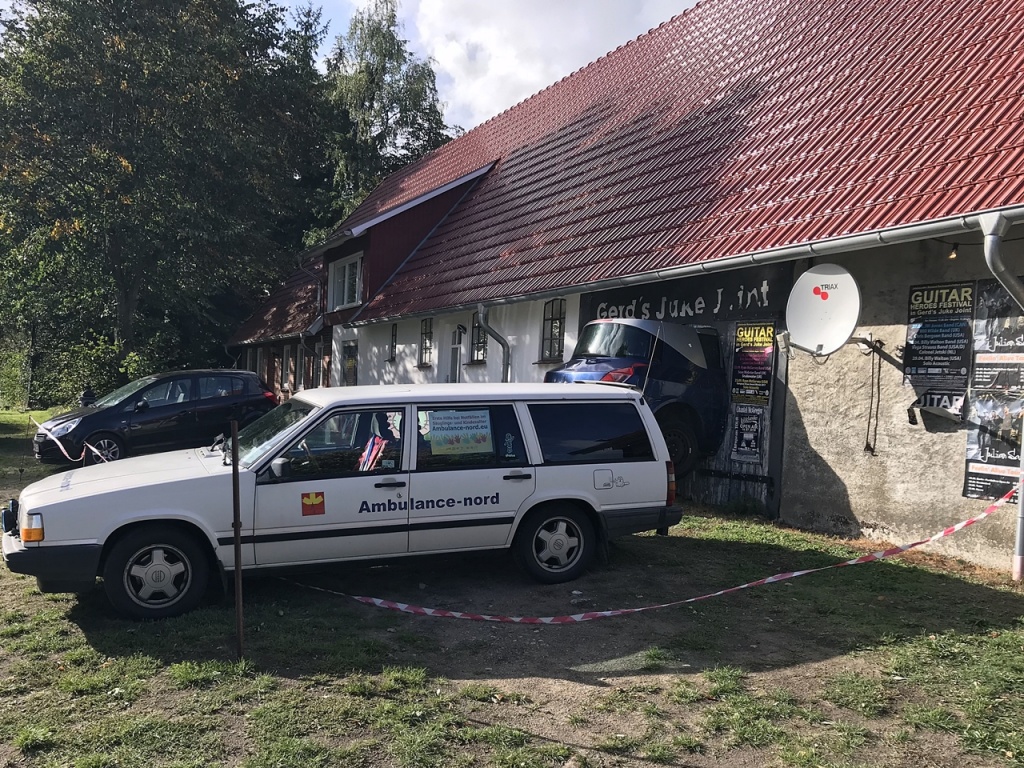 Nach 3 ½ Stunden problemloser Fahrt (vom Navi – oder Fahrer mal abgesehen) erreichte der Vierer das Ziel irgendwo im Nirgendwo. Das Headquartier von Gerd – auch liebevoll und augenzwinkernd ’Gerds Juke Joint’ genannt – kam zunächst wenig spektakulär rüber (mit Ausnahme eines durch die Wand geknallten Autos), was sich im Laufe des Wochenendes aber noch gehörig ändern sollte.
