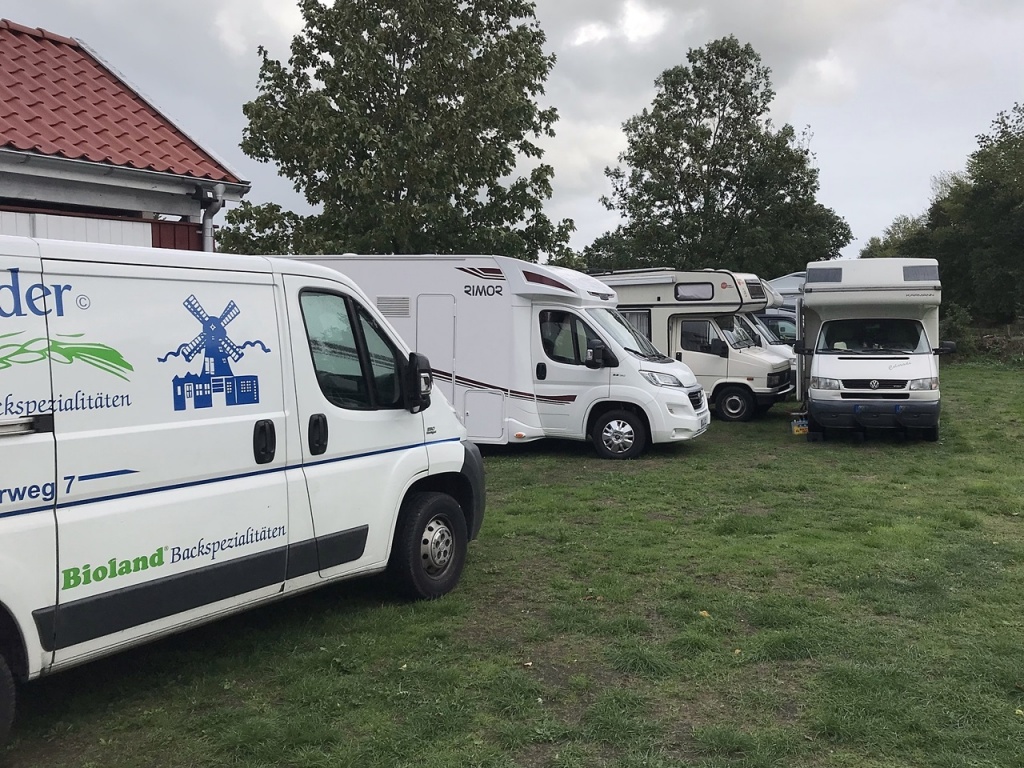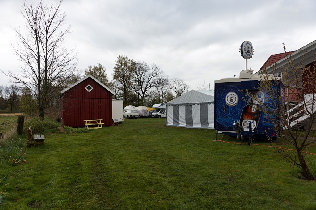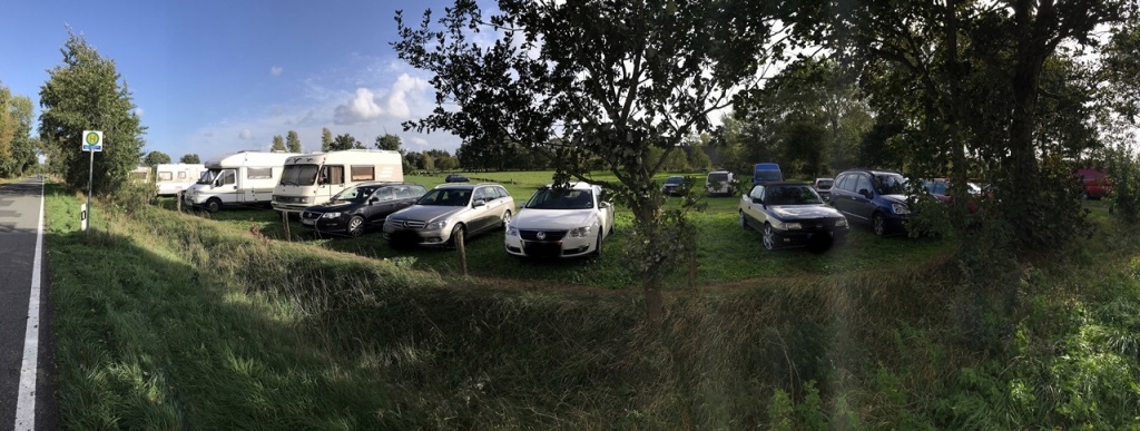 Also … wohin mit dem Caravan? Ganz einfach … quasi in Gerds „Garten“ … bloß keine Obstbäume beim rangieren beschädigen! Erste Bullies, Wohnmobile und Caravans waren auch bereits vor Ort. Nun noch schnell vor dem drohenden Regen das rollende Schlafklo vernünftig ausgerichtet, Vorzelt enttüdelt und unfallfrei aufgebaut, die Mistral-Sturmverspannung ob der drohenden Nordwinde angebracht, Stühle und Tische aufgeklappt, den Bluetooth-Krawallmacher in Stellung gebracht und schlussendlich die Kühlbox geöffnet … das Joldelunder Festival der etwas anderen Art konnte beginnen!