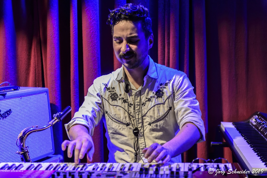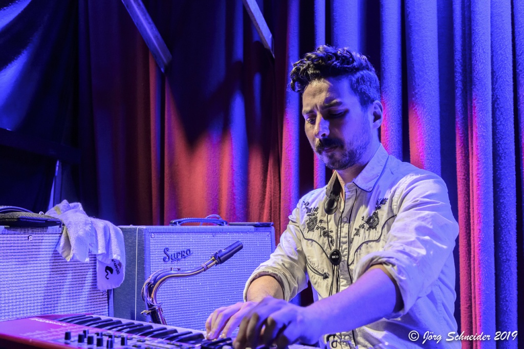 Aber auch die beiden überragend agierenden Curtis Chaffey (mit akribisch genauem E-Gitarrenspiel) und Andrew Moljgun mit seinen Keyboard-Klimpereien sowie einigen furiosen Saxofoneinlagen, als auch die satt groovende Rhythmusfraktion, bestehend aus Ian MacEwan am Bass und ‚Babyface‘ Stephen Adu am Schlagzeug, hatten erheblichen Anteil daran, dass es in der Rampe wie in einem Hexenkessel brodelte.