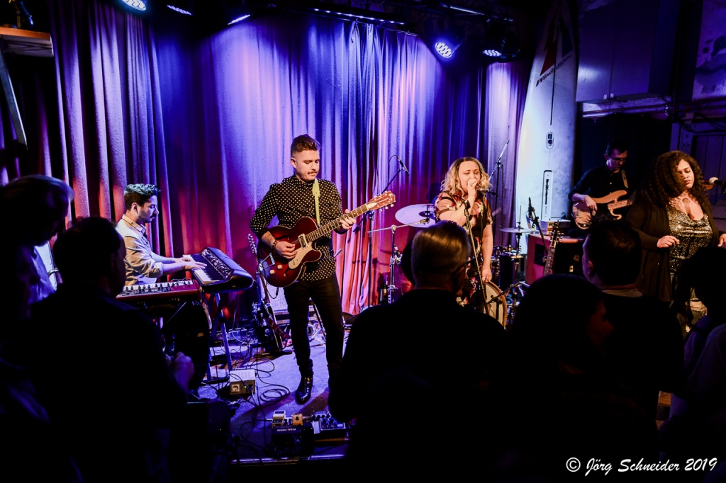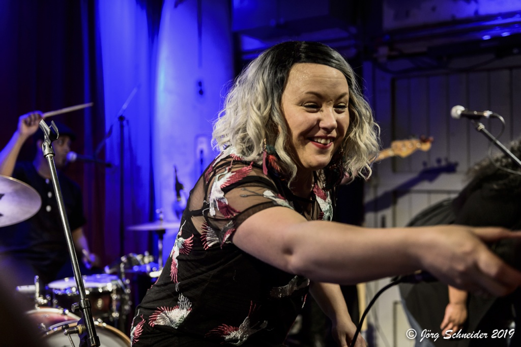21:15 Uhr schlängelte sich die Band um ihr anführendes Energiebündel Samantha Martin durch die proppenvolle Location, um mit Tracks wie dem satt groovenden Opener „Rocky“, dem CCR-angehauchten „All Night Long“ oder dem herrlichen Schwofer „Gonna Find It“ schwül-heiße New Orleans-Frenchquarter-Atmosphäre im Auditorium zu verbreiten.