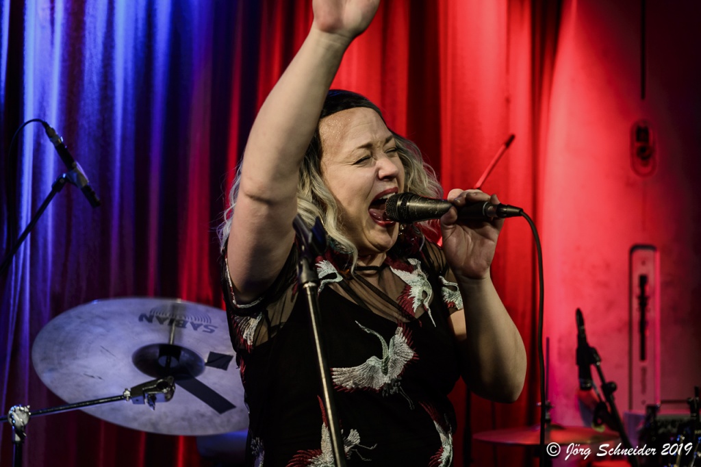 Die kleine aber durchaus charismatische Fronterin überzeugte mit gewaltiger Energie und Emotionalität in ihrer Stimme und ansteckender Bühnenpräsenz, die von den beiden dunkelhäutigen Sängerinnen Sherie Marshall und Mwansa Mwansa (was für eine Erscheinung!), noch weitere vokale Vehemenz in Sachen Harmonien und Backgrounds erhielt.