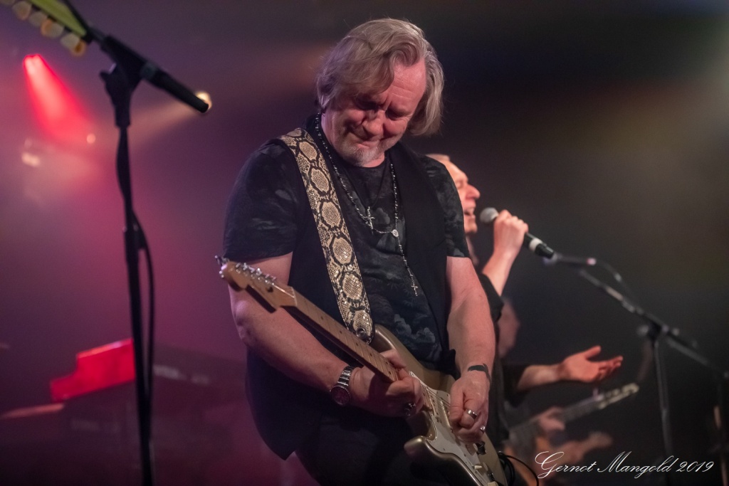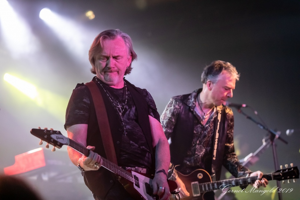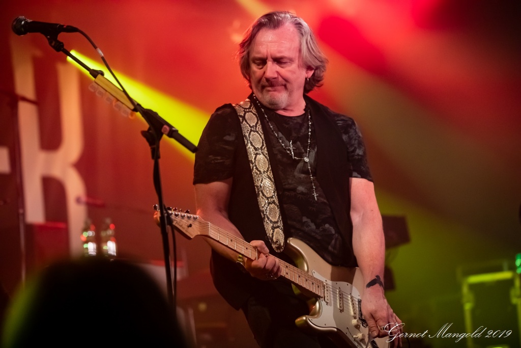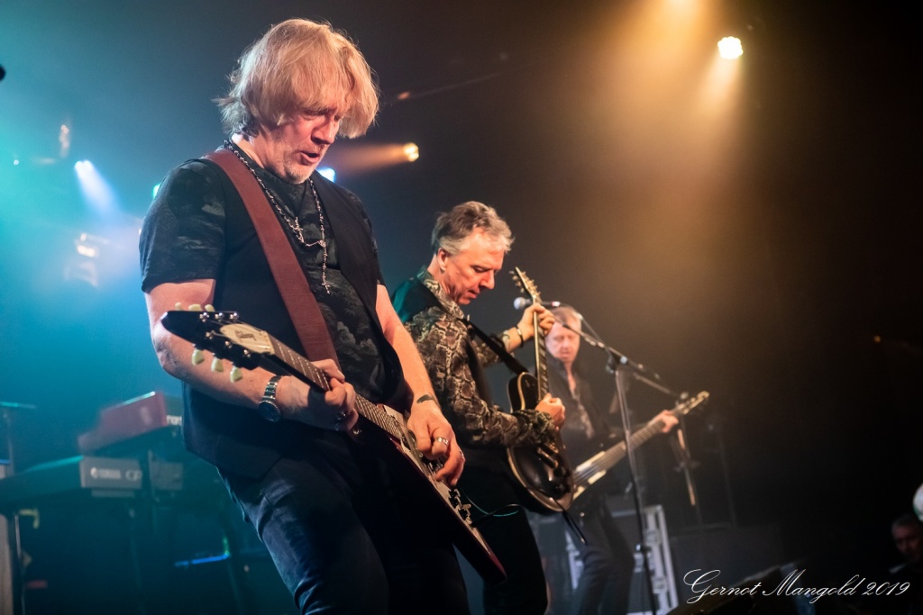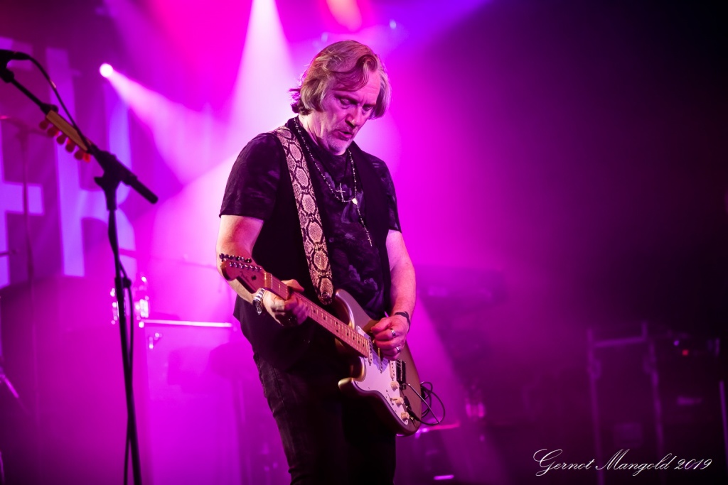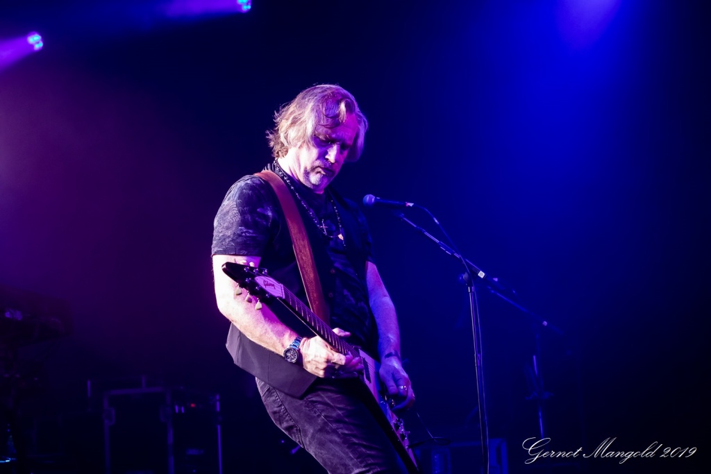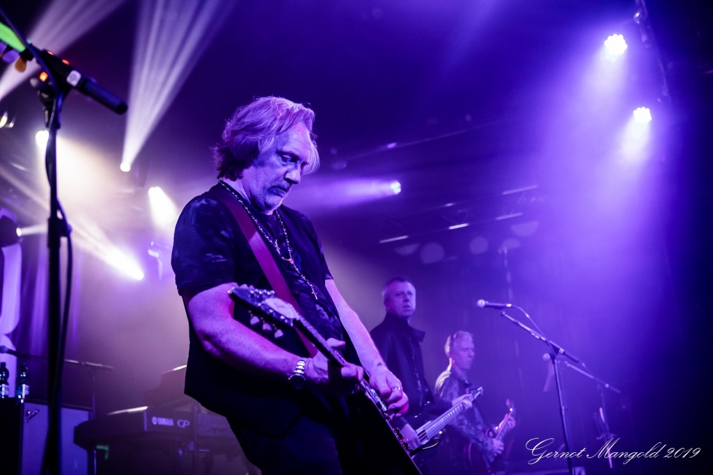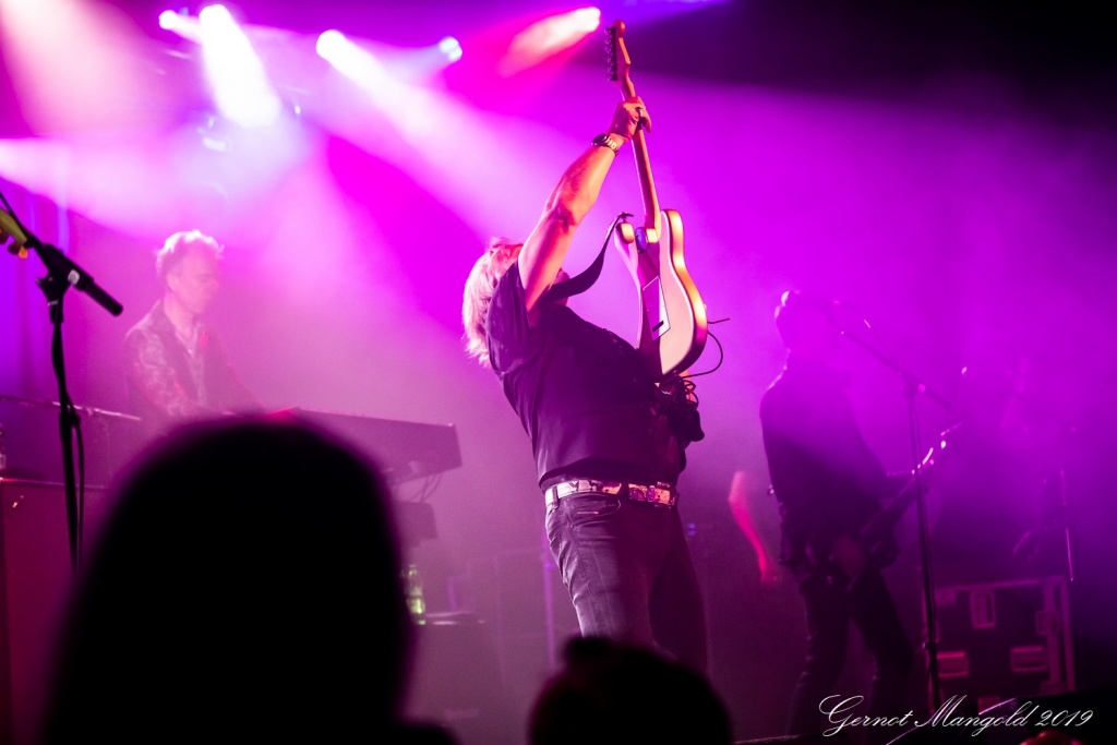 Luke Morley war neben seinen beiden Akustikgitarren-Intermezzi, diesmal neben seiner hellen Stratocaster und der schwarzen Les Paul, schwerpunktmäßig mit einer bordeaux-rot-weißen Flying-V-E-Gitarre unterwegs, und lieferte zahlreiche einfühlsame, als auch quirlige Soli ab.