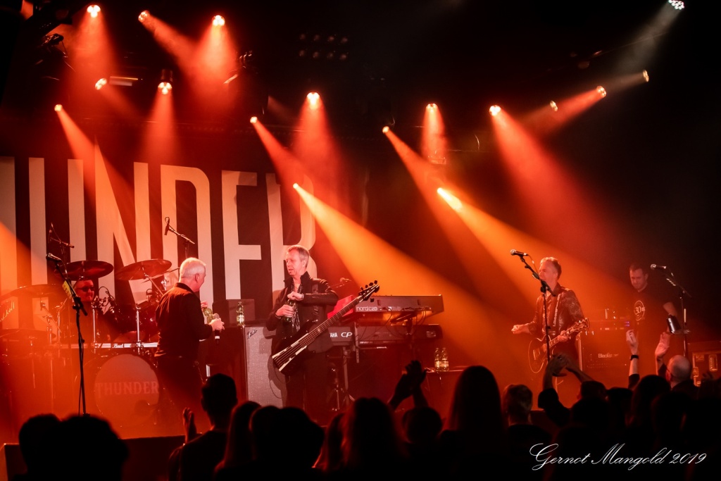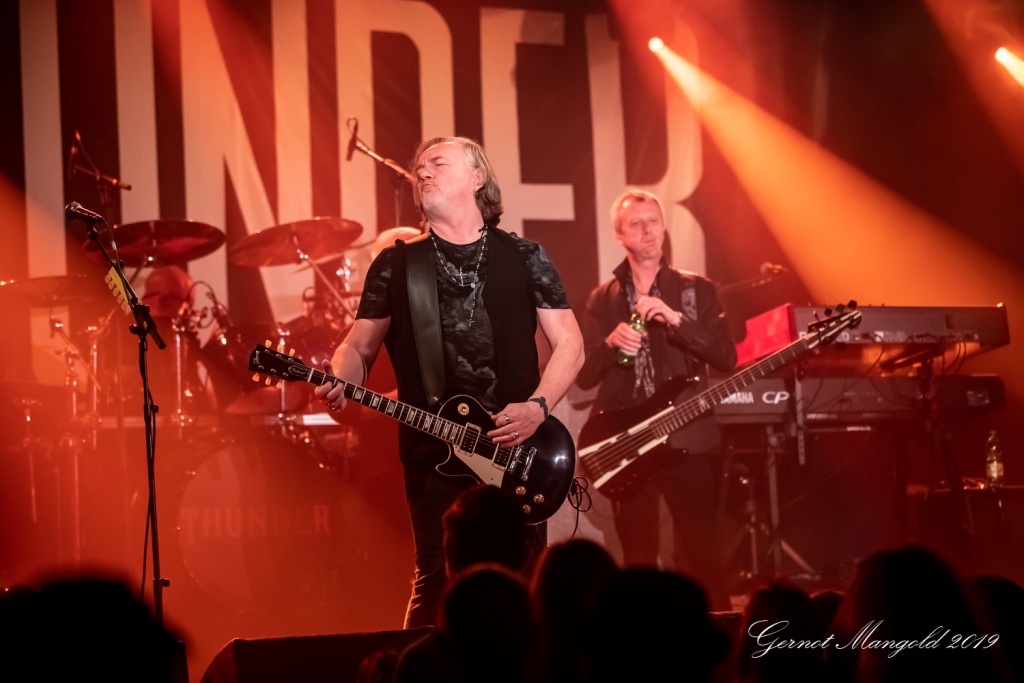 Morley, Bowes & Co. zeigten sich davon allerdings ziemlich unbeeindruckt und bedankten sich bei den ‚Standhaften‘ mit einem spielfreudigen Konzert – ja man kann schon konstatieren – Thunder hatten richtig Bock!