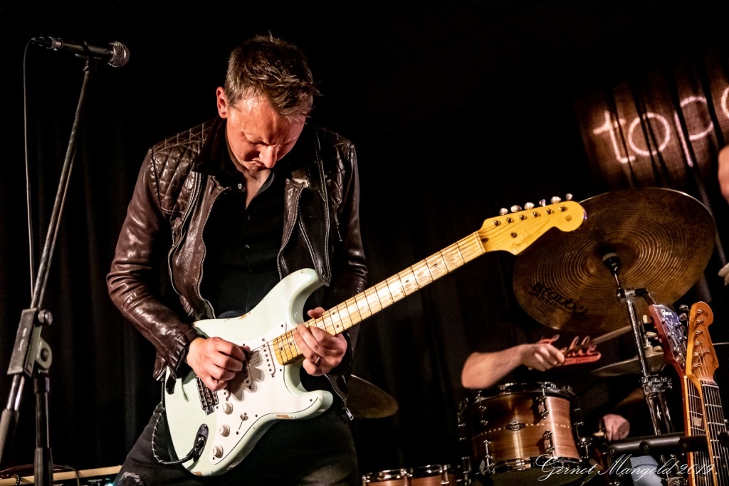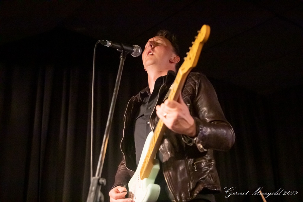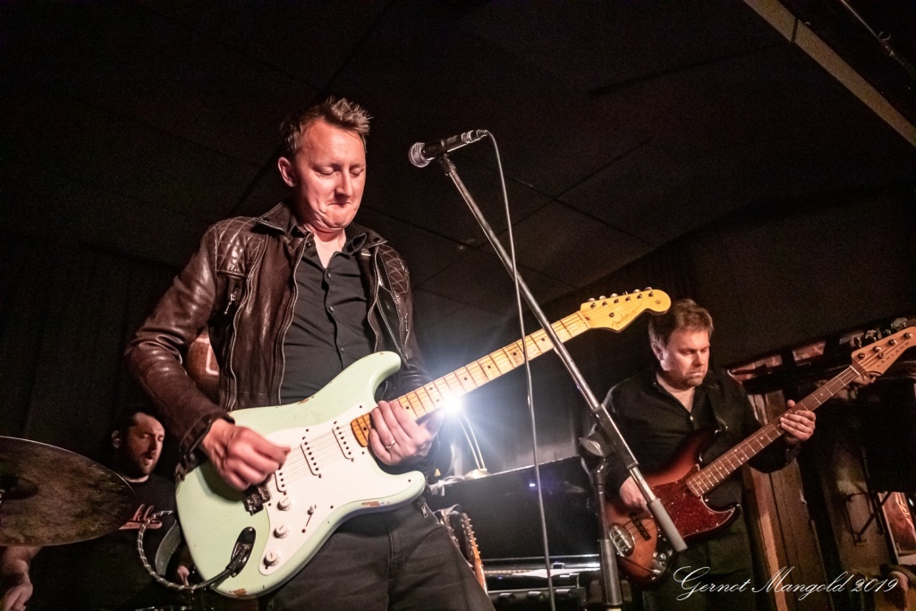 Ash Wilson, der bis auf eine Ausnahme („Words Of A Woman“) mit einer mintgrün-weißen Stratocaster ‚unterwegs‘ war, stieg samt seiner beiden Begleiter, mit dem psychedelisch-umwehten „Peace And Love“ (klasse hier direkt seine Zwischengesangspassage ohne Mikro) in den Gig ein. „World’s Gone Crazy“ (70er-Flair), das shufflig groovende „The Revalator“, die beiden Peter Green-angehauchten „The Hitcher“ und „The Whiskey Blues“ (ganz stark!), sowie der Titeltrack des besagten Albums (mit dezenten David Gilmour-Kurz-Fills), erzeugten zurecht reichhaltigen Applaus der Anwesenden.