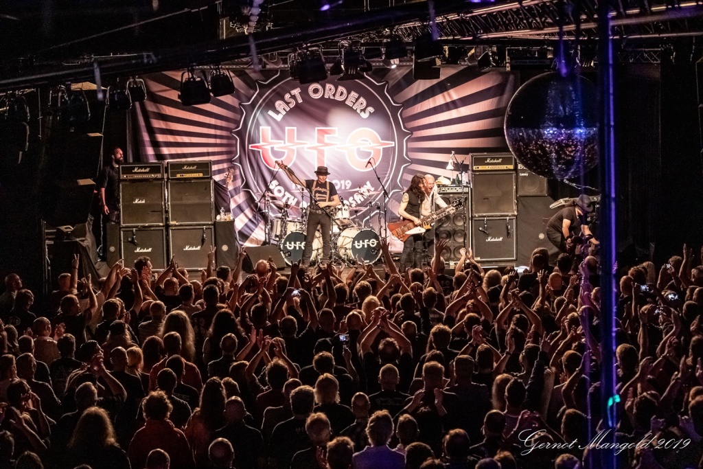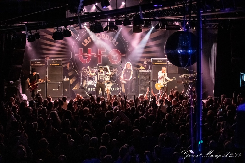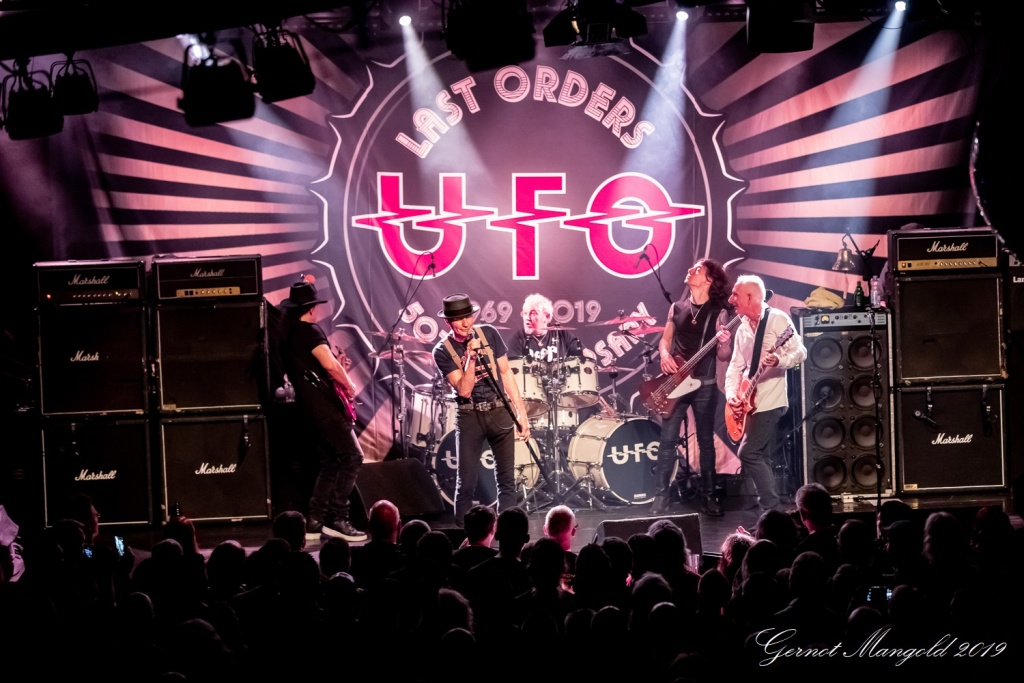 Im Rahmen der ‚Last Orders‘-Tour kamen UFO an einem frühsommerlichen Abend auch in die Kantine im Kölner Norden. Diese Tour zum 50-jährigen Bandjubiläum, bildet, wie der Name es schon suggeriert, vermutlich den Abschluss einer der erfolgreichsten englischen Hard Rock-Vertreter der ersten Stunden. Somit kam aus diesem Grund eine gewisse Wehmut auf, aber auch, weil Paul Raymond, langjähriger Keyboarder und Gitarrist der Band, kurz nach den ersten Auftritten überraschend verstorben war und zunächst nicht klar war, ob fortgesetzt werden würde.