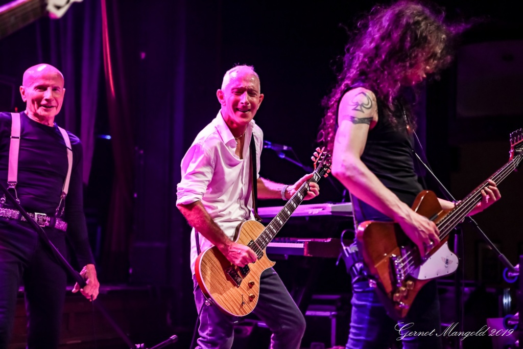 Apropos Neil Carter, der füllte seine Doppelrolle deutlich temperamentvoller als Raymond aus, er war wie ein Irrwisch ständig auf der Bühne in Bewegung und hatte auch noch, genau wie der ebenfalls gewohnt agile Bassist Rob de Luca, dezente Harmoniegesangseinsätze.