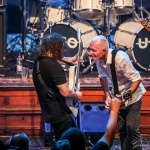 Die Piano-Lichtanlage hielt dem musikalischen Druck von „Lights Out“ problemlos stand, während bei der Powerballade „Baby Blue“ das Doppelspielchen von Vinnie und Neil, erneut vollzogen wurde, Der langmähnige Lockenkopf hatte hier allerdings zur Abwechslung eine Stratocaster im Anschlag.