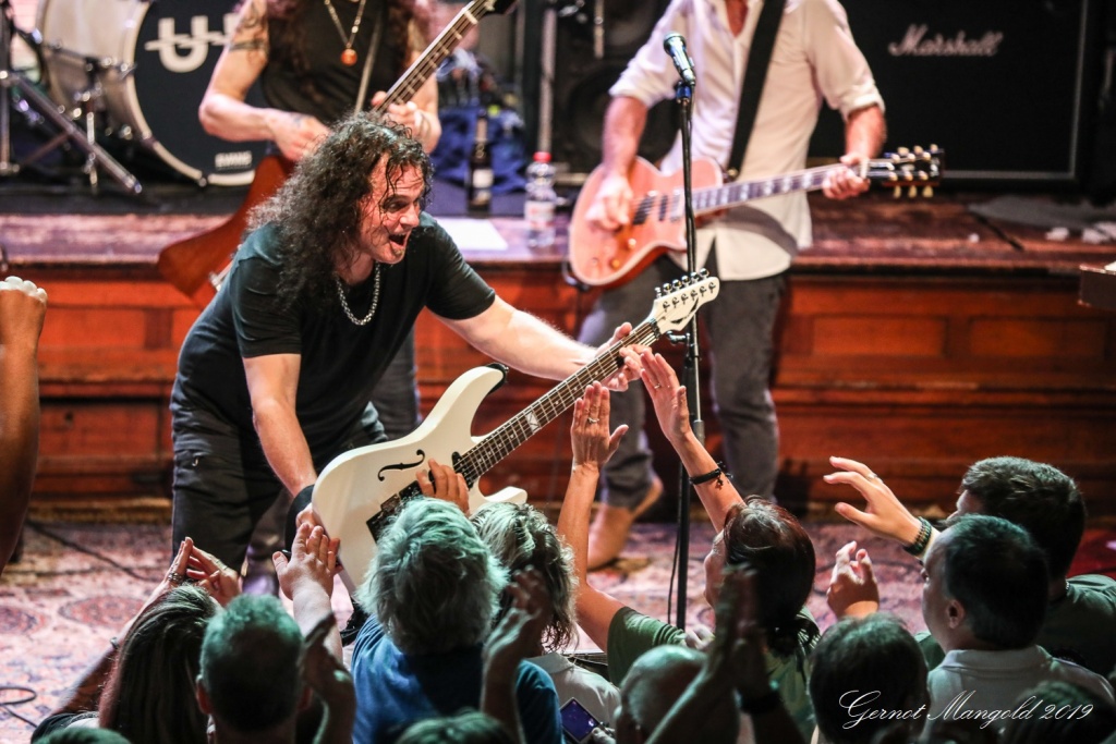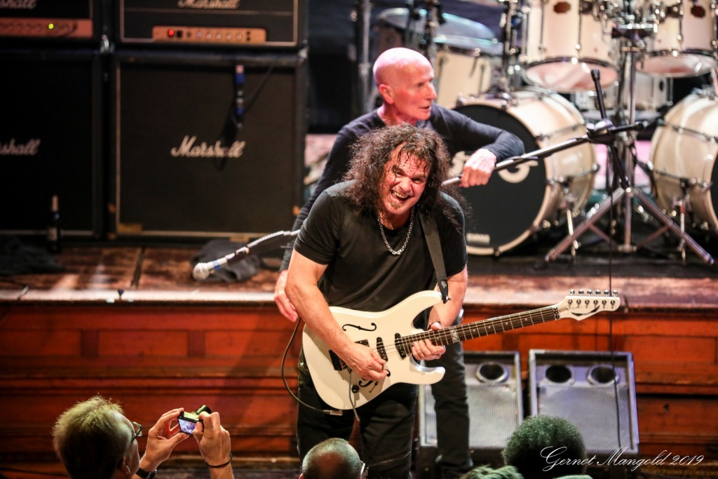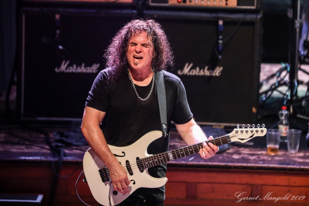 Mit “Mother Mary “, “We Belong To The Night” und “Run Boy Run” stampften und rockten der sich scheinbar irgendwie nie verändernde Hosenträger tragende Phil Moog und seine Begleiter, geradeaus los. Lead-Gitarrist Vinnie Moore ließ bereits die ersten seiner unzähligen quirligen und hymnischen Soli auf einer Dean Vinman Semi Hollow Metallic White-E-Gitarre vom Stapel.