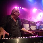 Bei „18 Wheels“ durchwehte ein Hauch von Southern Rock das Piano. Fotis Anagnostou am Bass und Lars-Eric van Elzakker an den Drums legten einen treibenden Grundrhythmus, der Sas alle Möglichkeiten gab, Soli einzustreuen und sich mit John Lord-Fan Roland Bakker an den Keys einige hitzige Duelle zu liefern. Schon zu diesen Zeitpunkt hatten Band und Publikum eine Art Symbiose gebildet, die sich gegenseitig anstachelte.