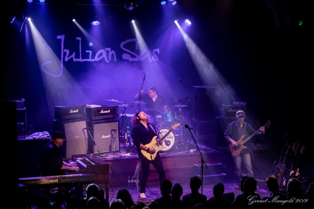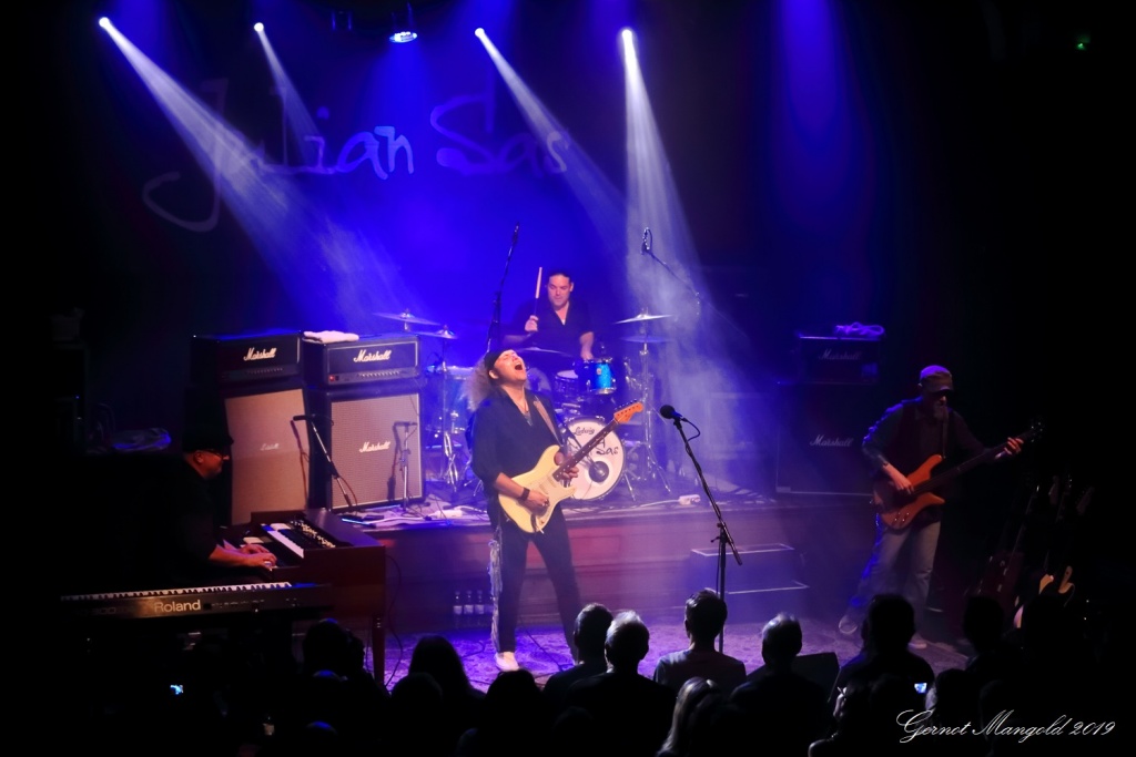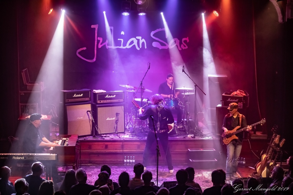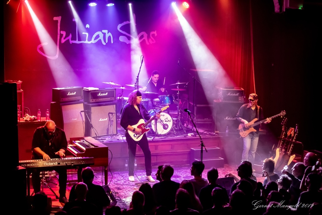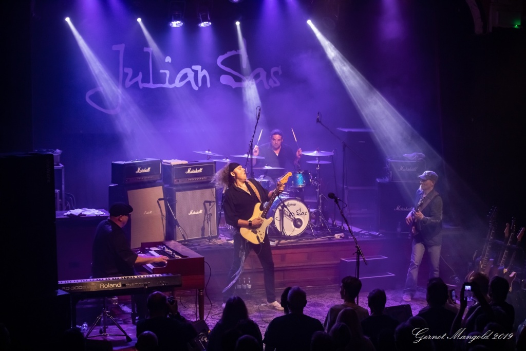 Schön waren aber auch die vereinzelt eingestreuten Coversongs, denen die Musiker aber ihren eigenen Stil einhauchten. Julian Sas und Band erwiesen sich an dem Abend als absolut blind eingespieltes Team, obwohl Drummer van Elzakker erst im Frühjahr bei der Band eingestiegen war und jetzt einen Klasse Job macht.