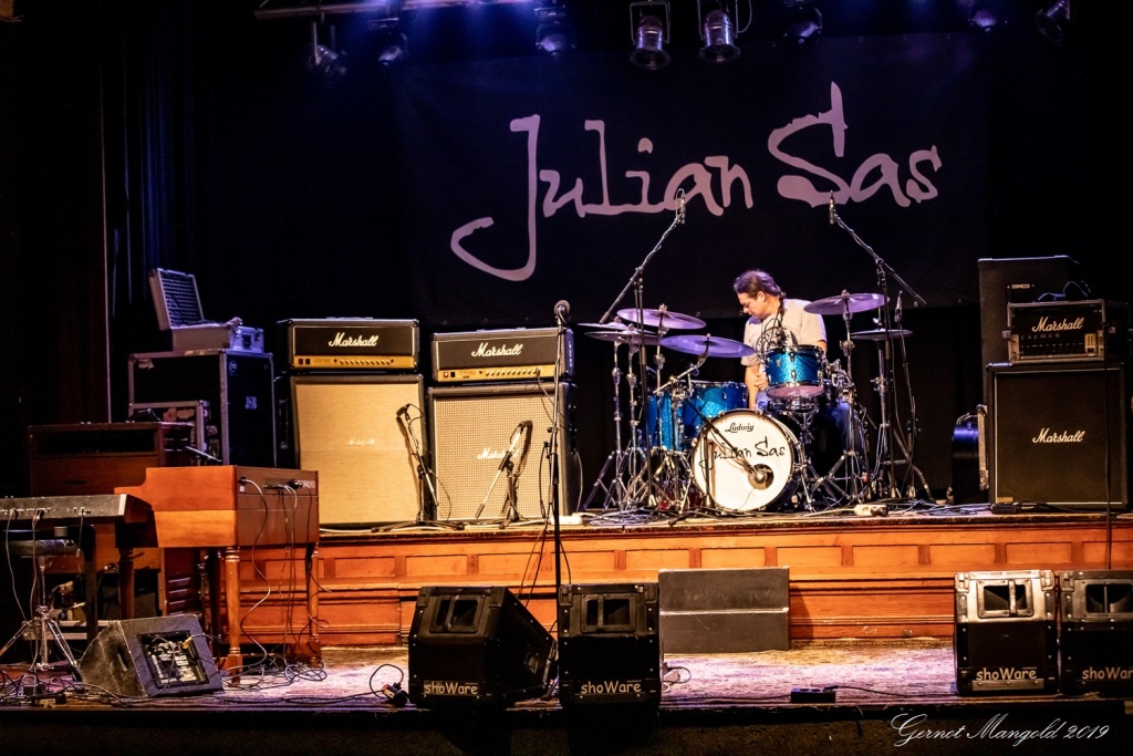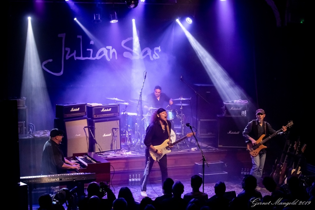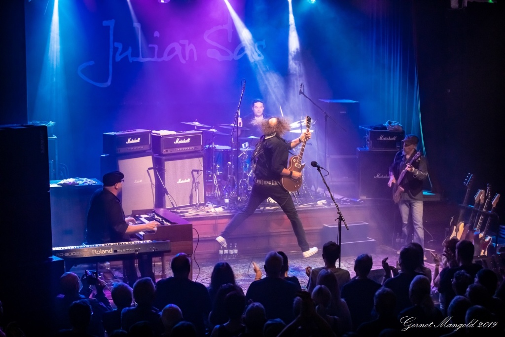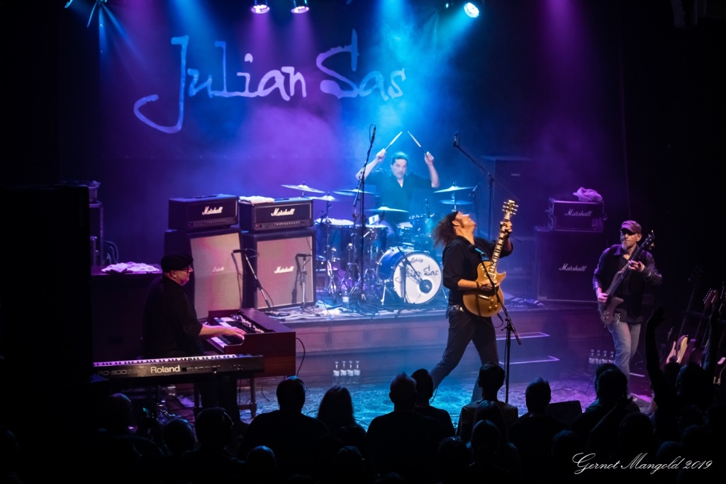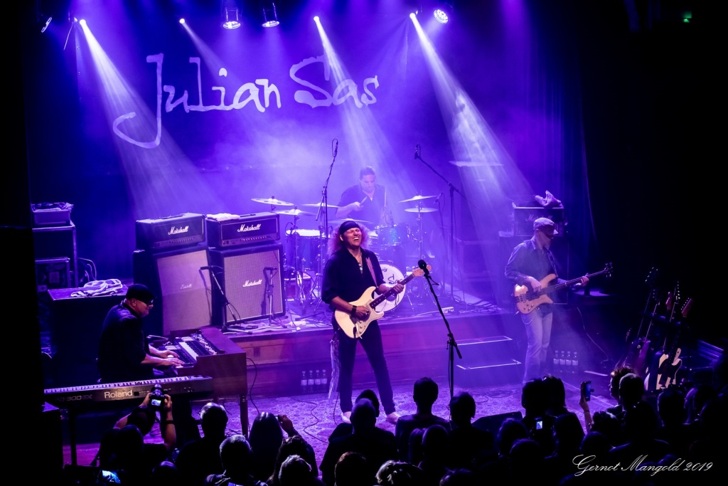 Schön waren aber auch die vereinzelt eingestreuten Coversongs, denen die Musiker aber ihren eigenen Stil einhauchten. Julian Sas und Band erwiesen sich an dem Abend als absolut blind eingespieltes Team, obwohl Drummer van Elzakker erst im Frühjahr bei der Band eingestiegen war und jetzt einen Klasse Job macht.