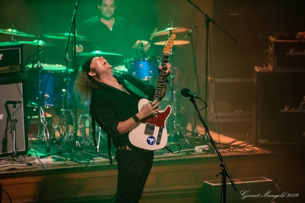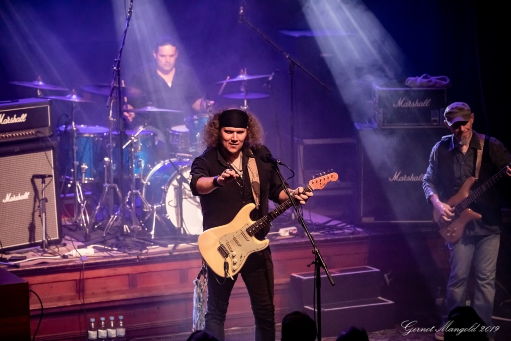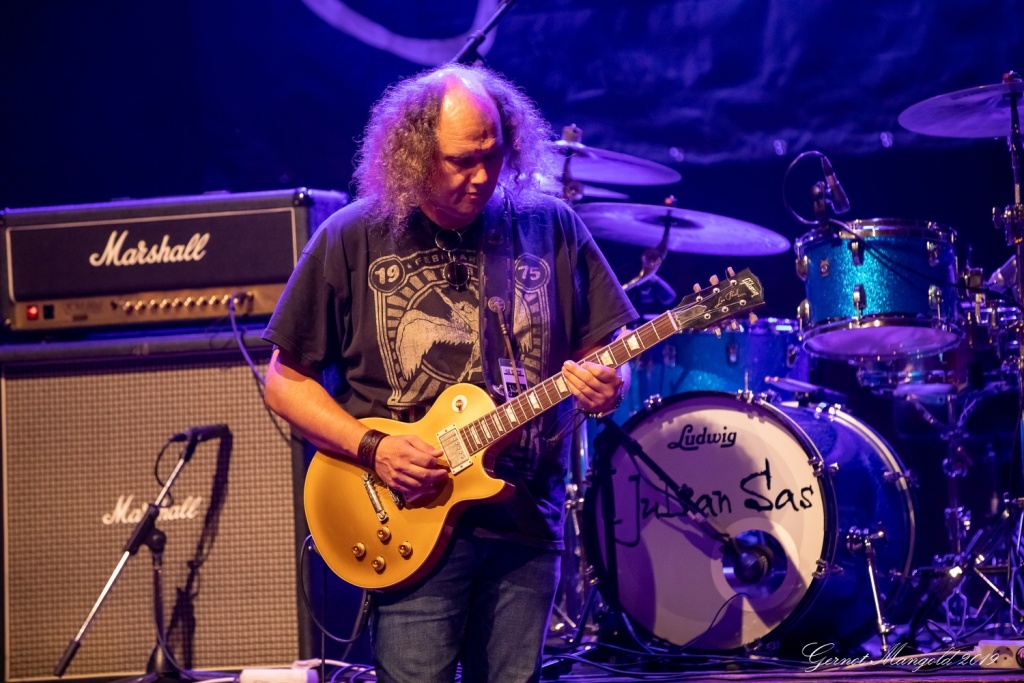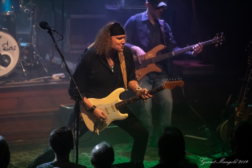 Ein fast schon epischer Moment des Abens war der Slowblues „Lost And Found“, zum Teil melancholisch gefühlvoll auch vom Gesang her, mit einem Solo der Extraklasse, in dem Sas bewies, dass es nicht nur auf das Tempo ankommt, sondern ein Solo auch mit dem Grundtenor des Songs einhergehen muss. In diesem Song waren auch stilistische Ähnlichkeiten zum Vorbild vieler Bluesmusiker zu erkennen, dem leider zu früh verstorbenen Rory Gallagher.