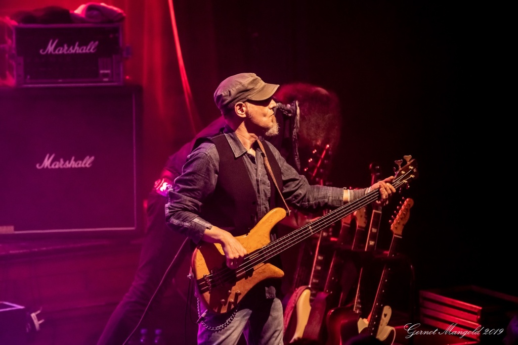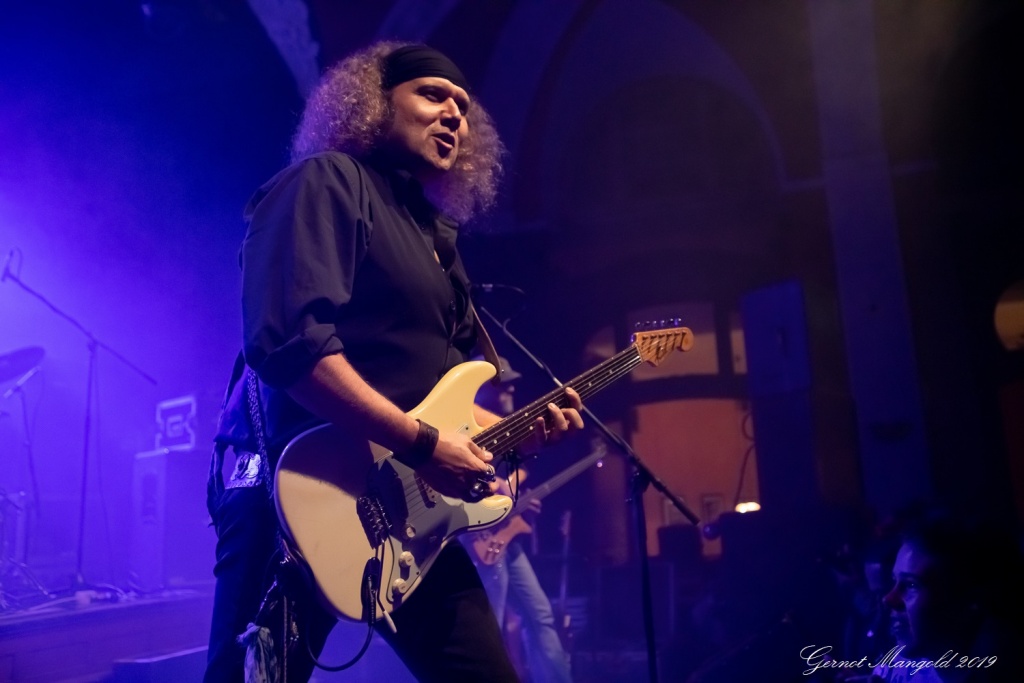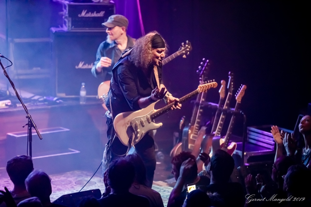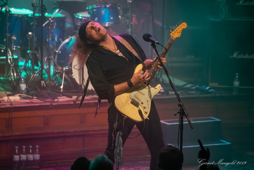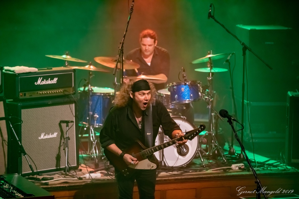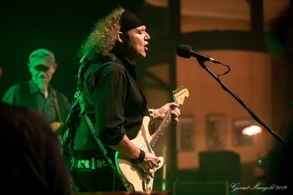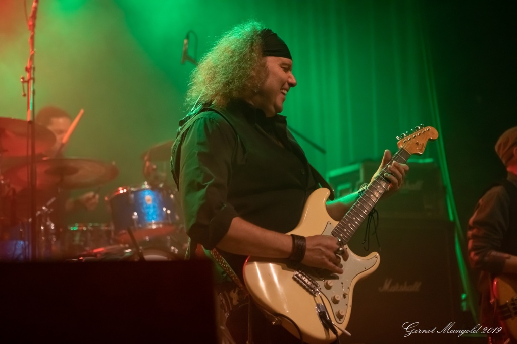 Schon „Makin My Return“ wies auf Julians Vorbild Jimmy Hendrix hin, was spätestens besonders deutlich wurde, als unmittelbar darauf psychedliesches Gespiel von Bakker und Julian an der Gitarre „Hey Joe“ einleiteten. Sas und Band zelebrierten diesen Rock-Evergreen regelrecht über knapp 10 Minuten, wo sich auch Fotis Anagnostou am Bass mit starker Mimik und Posen einbrachte.