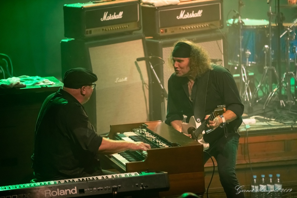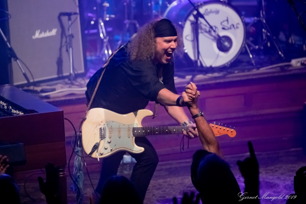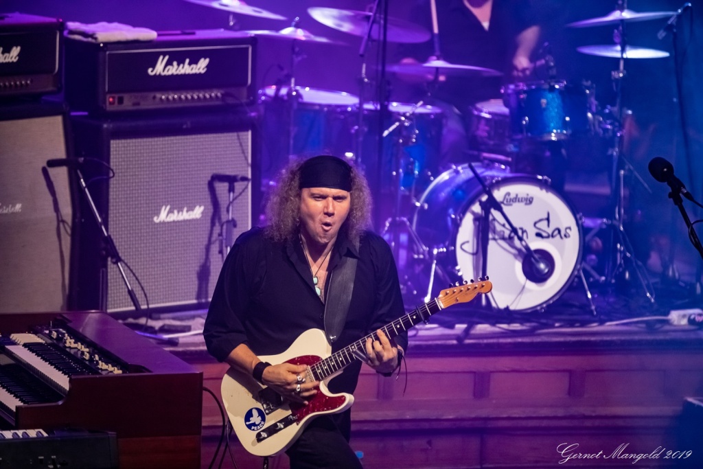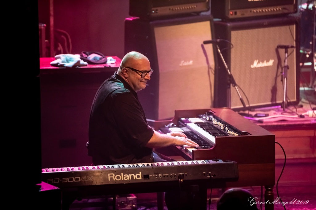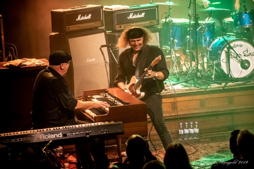 Bei „18 Wheels“ durchwehte ein Hauch von Southern Rock das Piano. Fotis Anagnostou am Bass und Lars-Eric van Elzakker an den Drums legten einen treibenden Grundrhythmus, der Sas alle Möglichkeiten gab, Soli einzustreuen und sich mit John Lord-Fan Roland Bakker an den Keys einige hitzige Duelle zu liefern. Schon zu diesen Zeitpunkt hatten Band und Publikum eine Art Symbiose gebildet, die sich gegenseitig anstachelte.