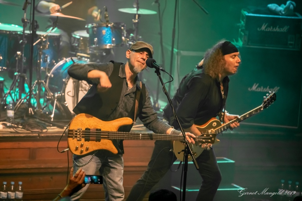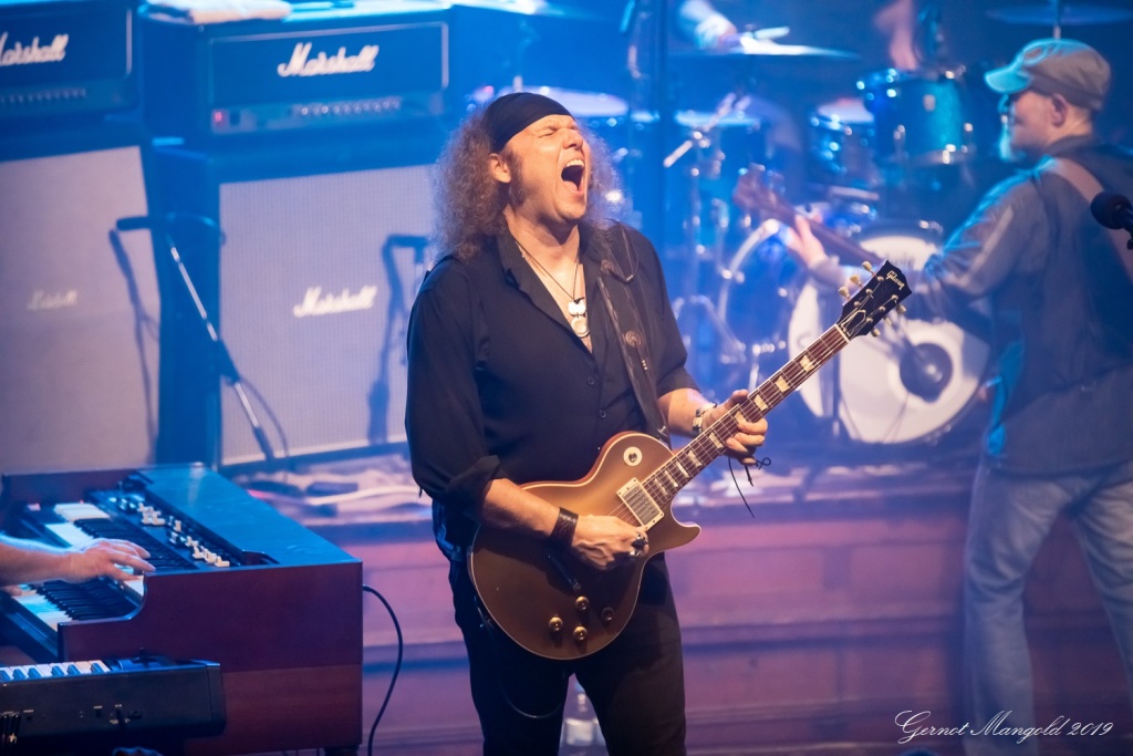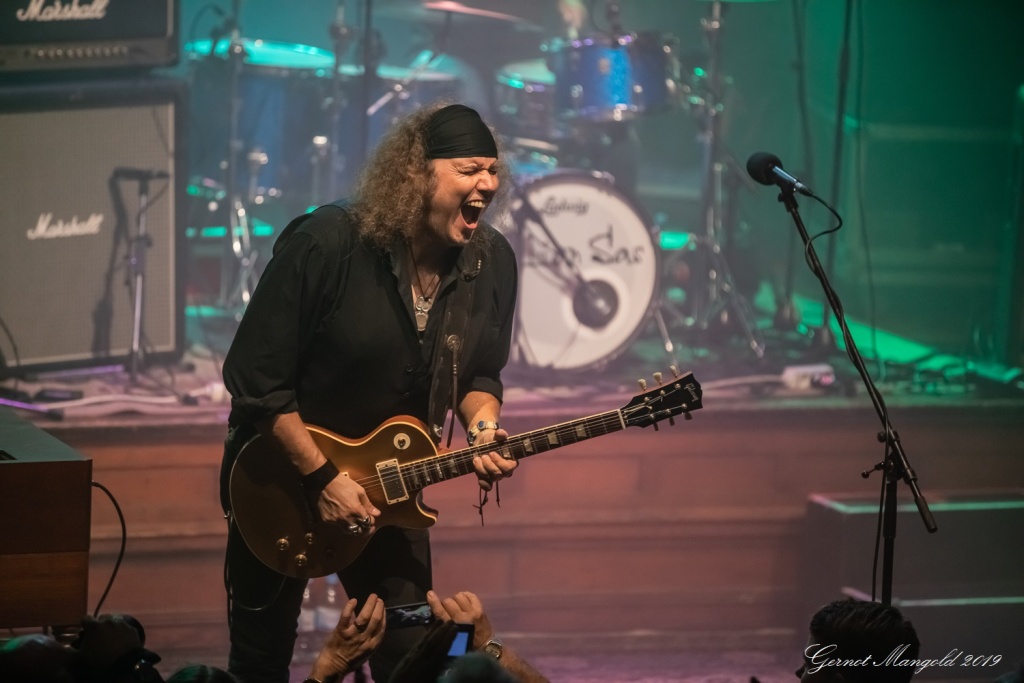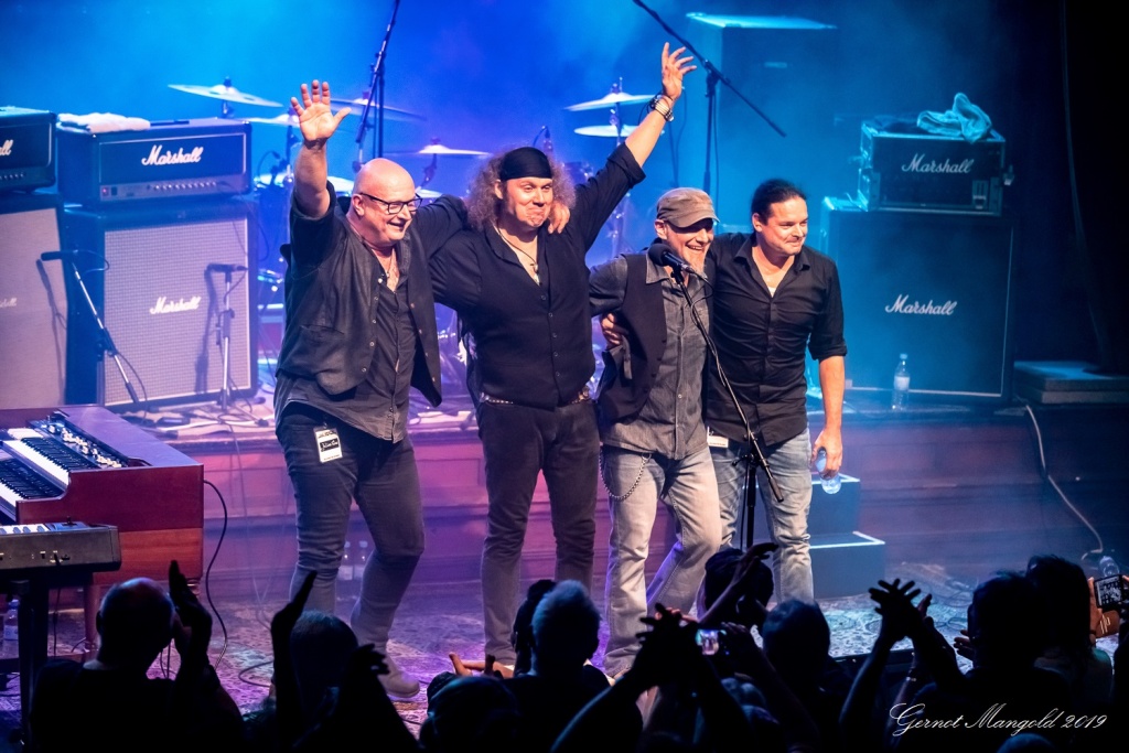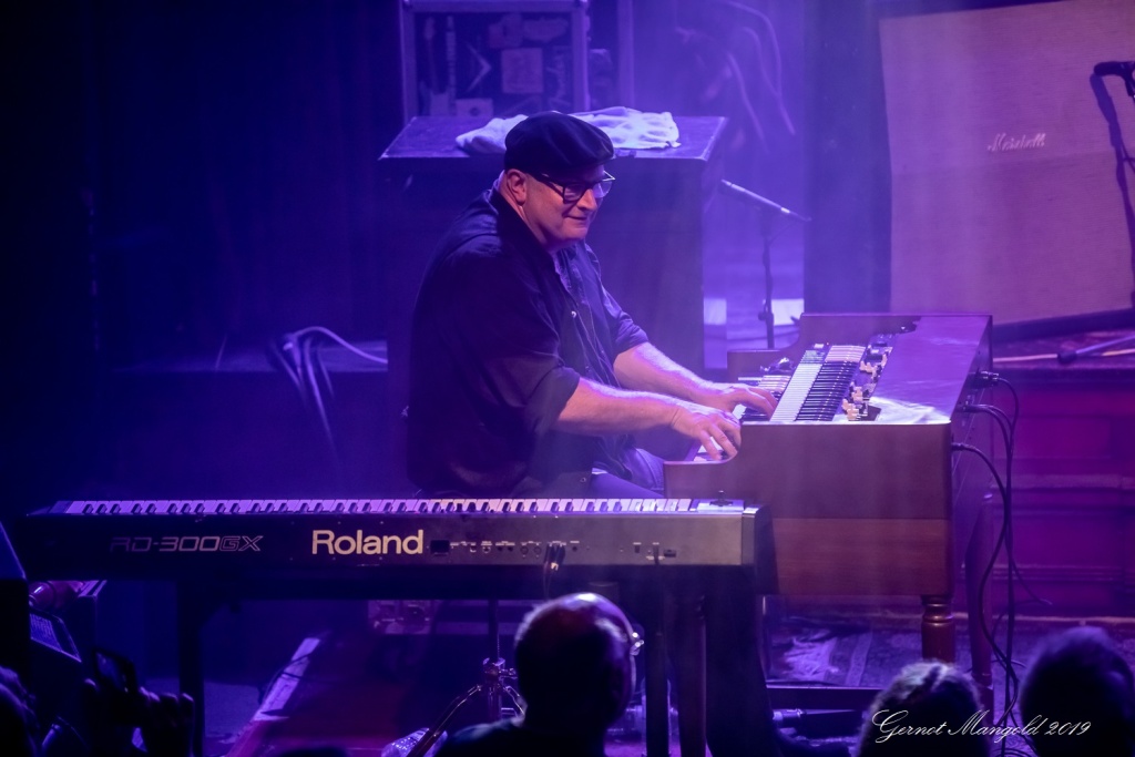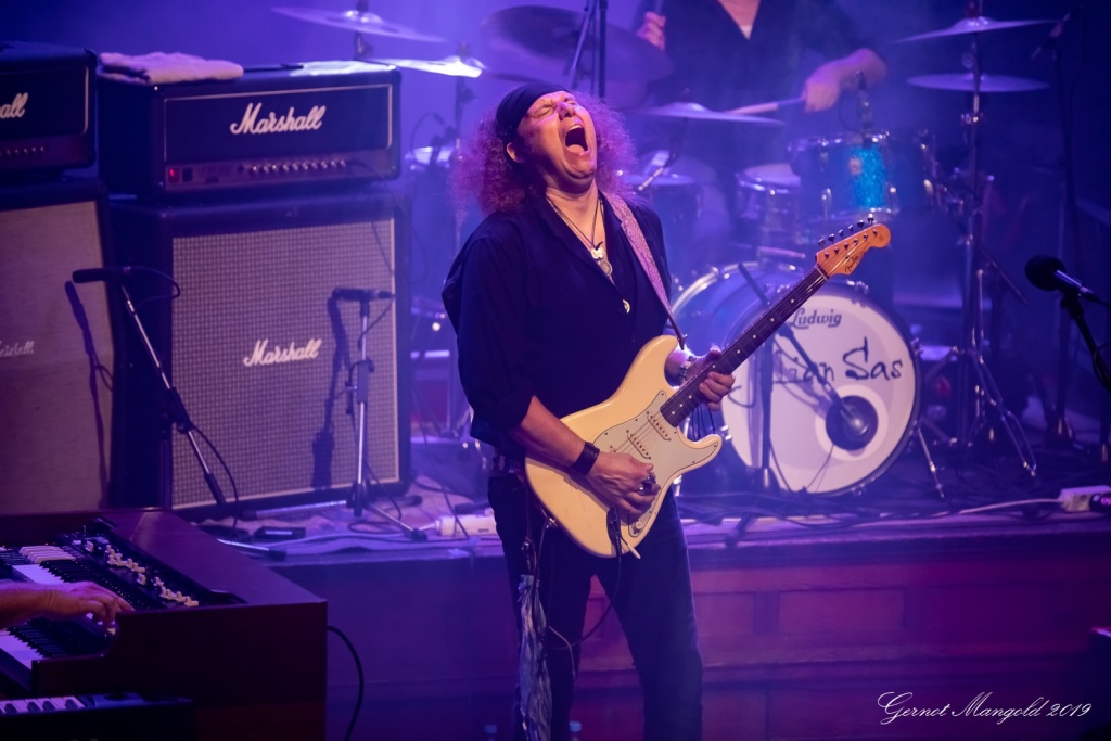 Bei „18 Wheels“ durchwehte ein Hauch von Southern Rock das Piano. Fotis Anagnostou am Bass und Lars-Eric van Elzakker an den Drums legten einen treibenden Grundrhythmus, der Sas alle Möglichkeiten gab, Soli einzustreuen und sich mit John Lord-Fan Roland Bakker an den Keys einige hitzige Duelle zu liefern. Schon zu diesen Zeitpunkt hatten Band und Publikum eine Art Symbiose gebildet, die sich gegenseitig anstachelte.
