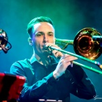 „Guntown“, schon im Adler ein Highlight, gewann durch die Bläsersektion noch einmal an Intensität. In einer losgelösten Version von „Unchained“ hatten alle Musiker ihren Solopart und wurden zu Recht vom Publikum mit Szenenapplaus bedacht.