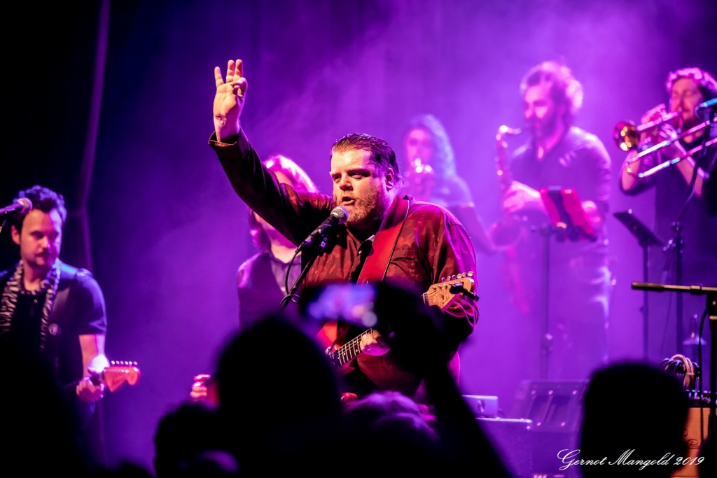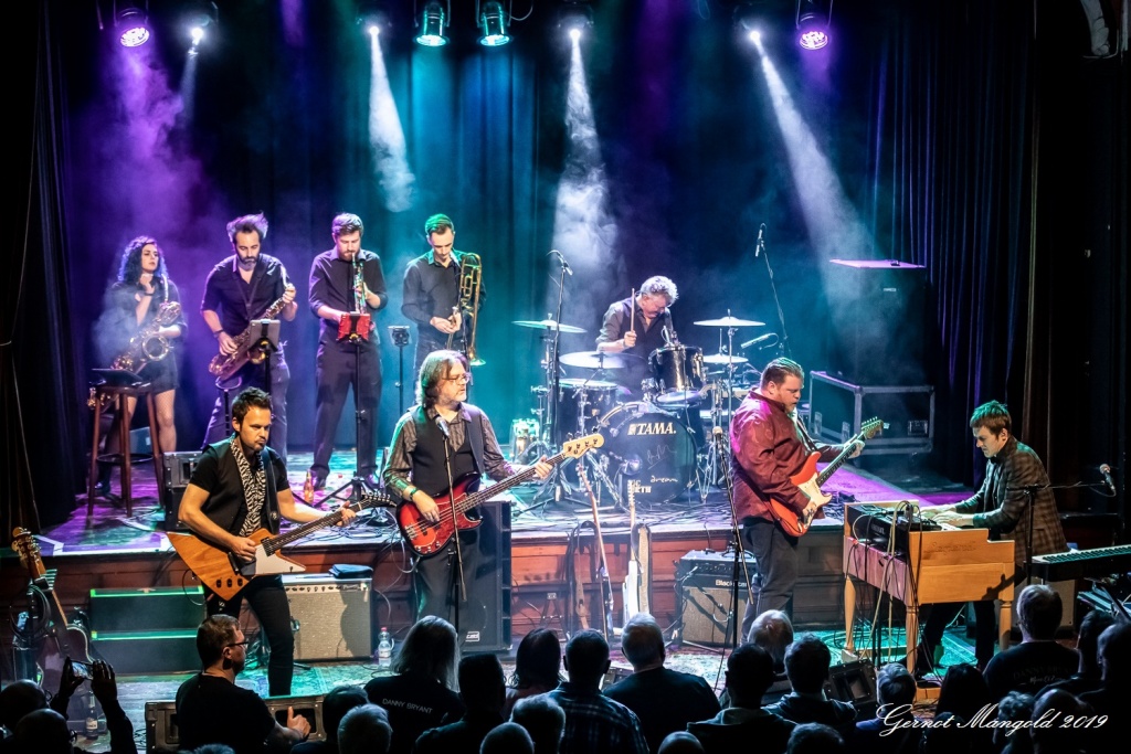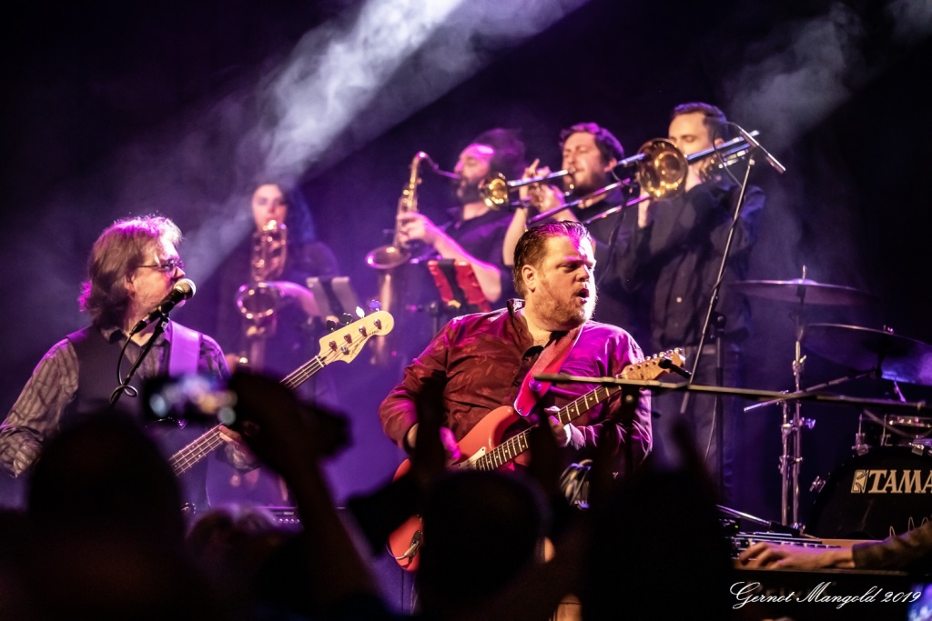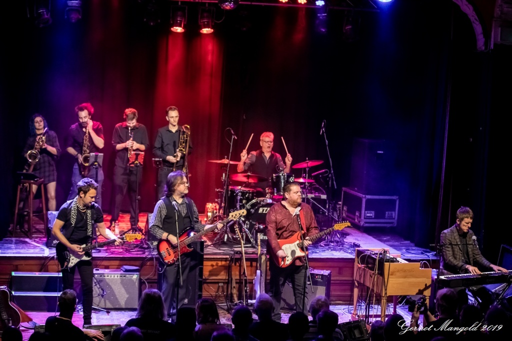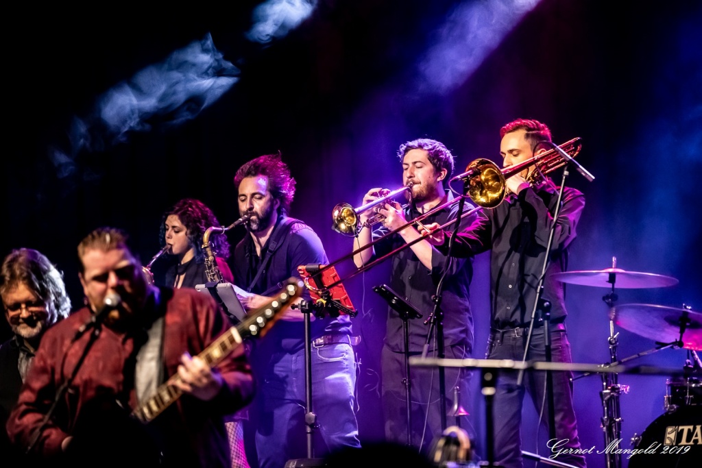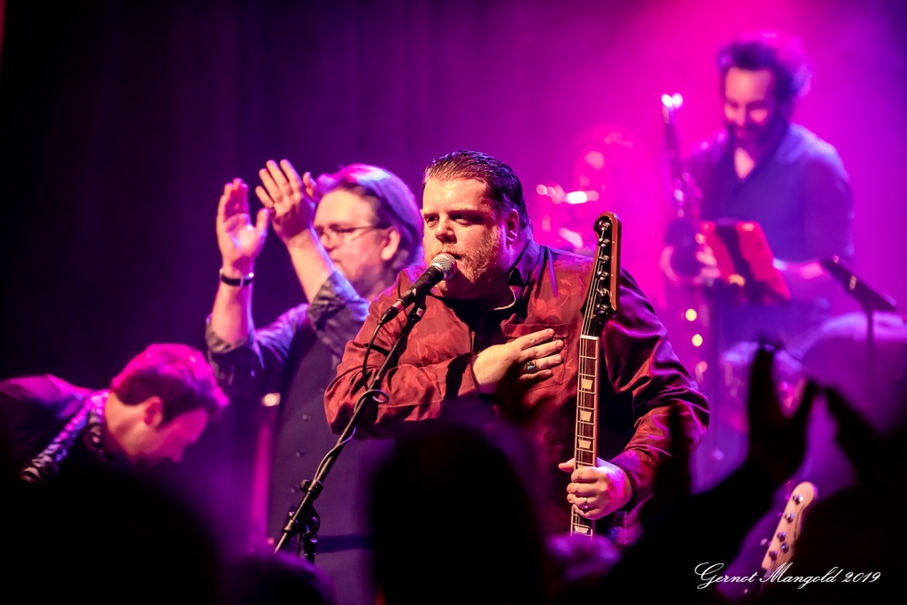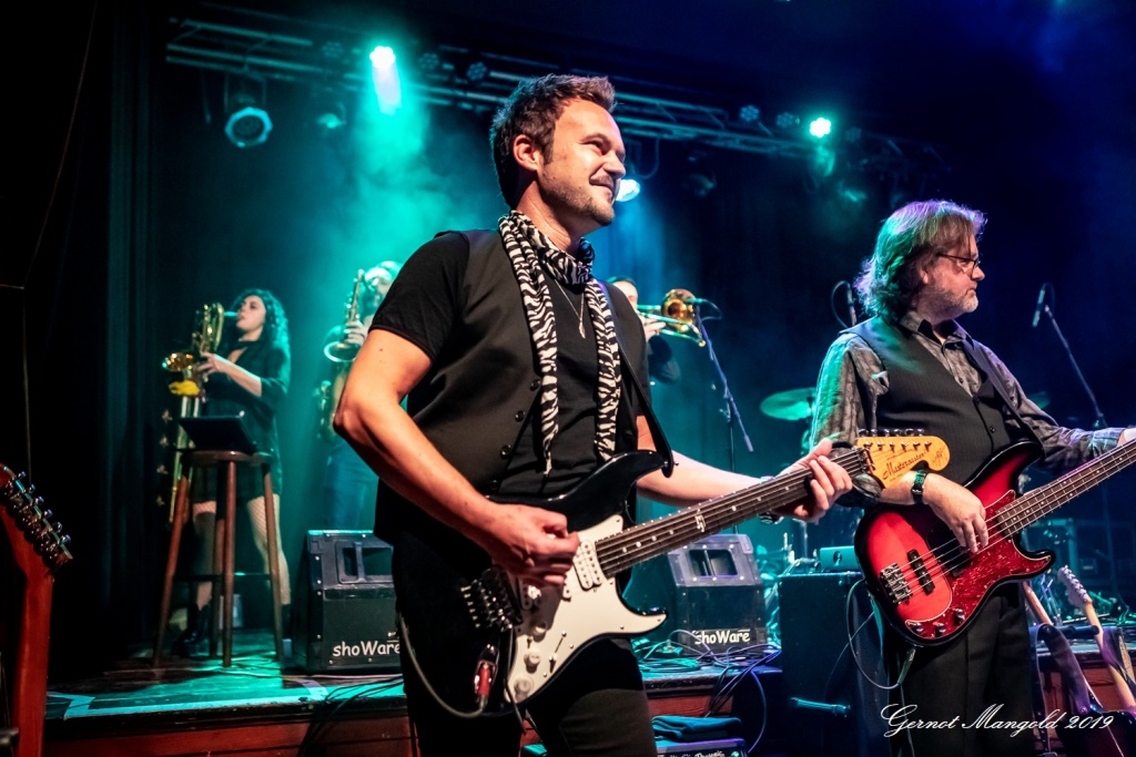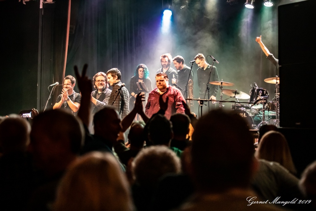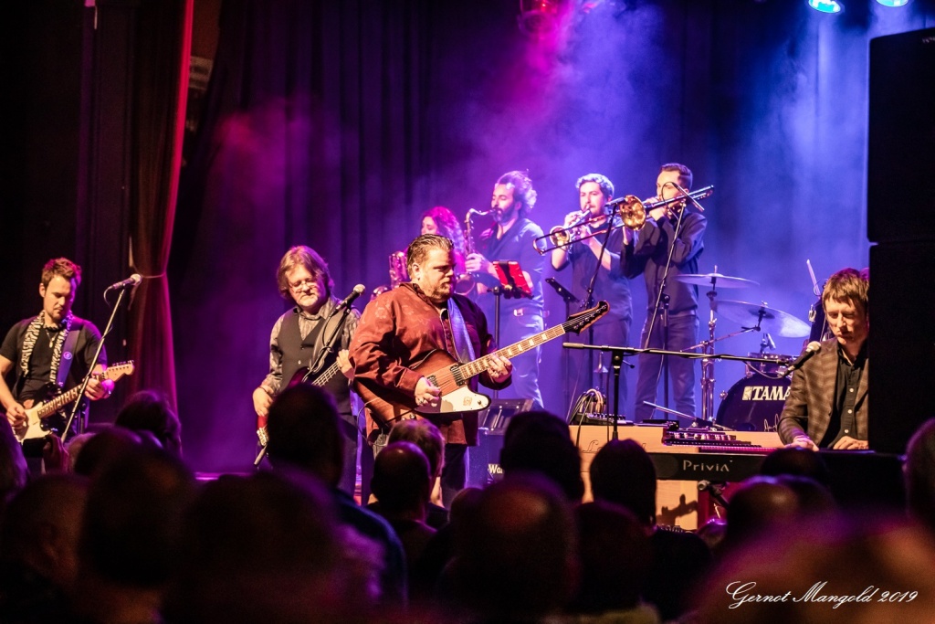 „Guntown“, schon im Adler ein Highlight, gewann durch die Bläsersektion noch einmal an Intensität. In einer losgelösten Version von „Unchained“ hatten alle Musiker ihren Solopart und wurden zu Recht vom Publikum mit Szenenapplaus bedacht.