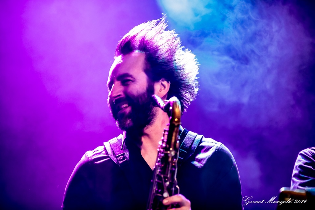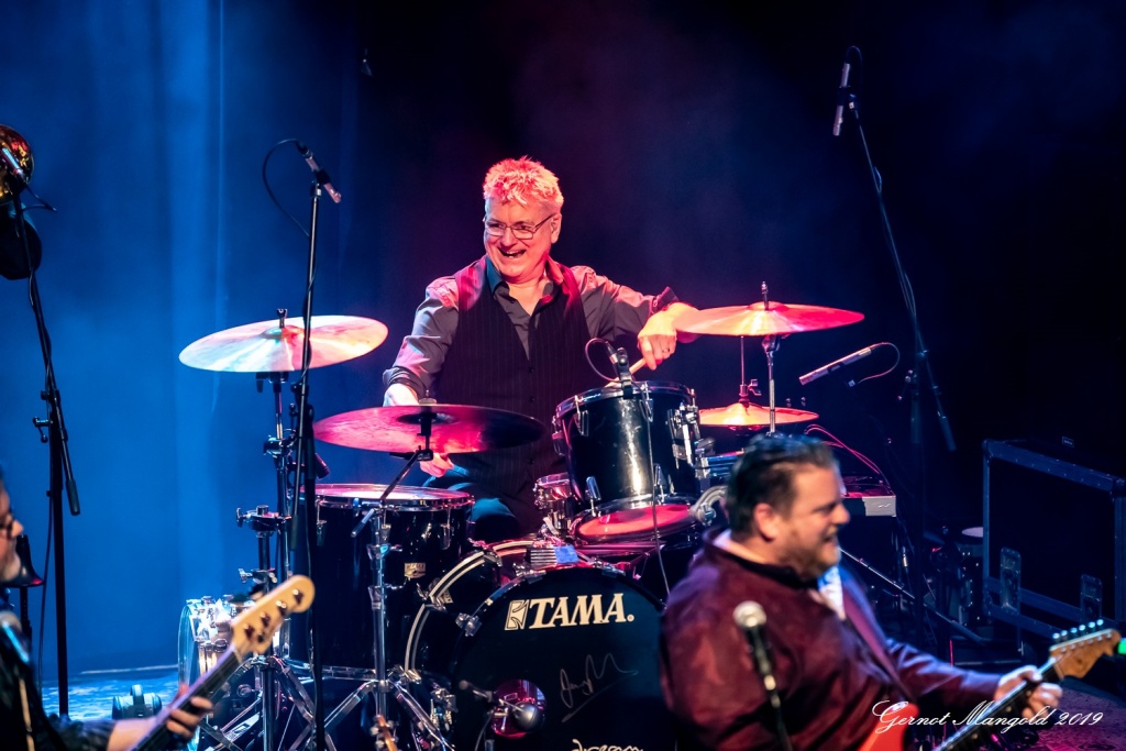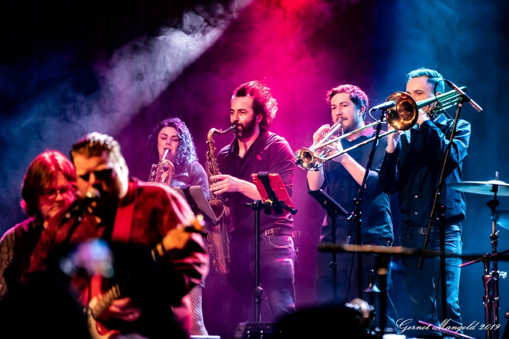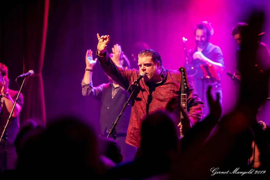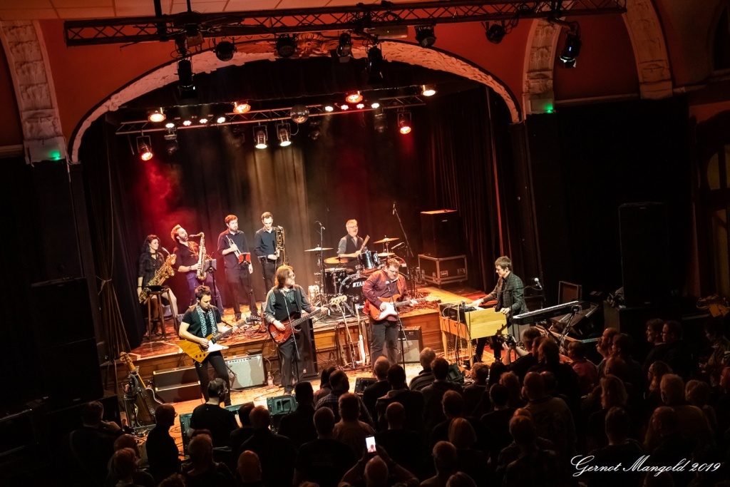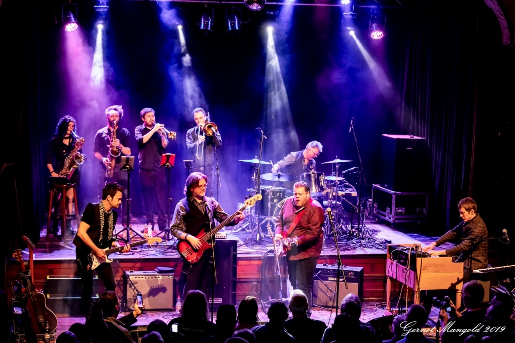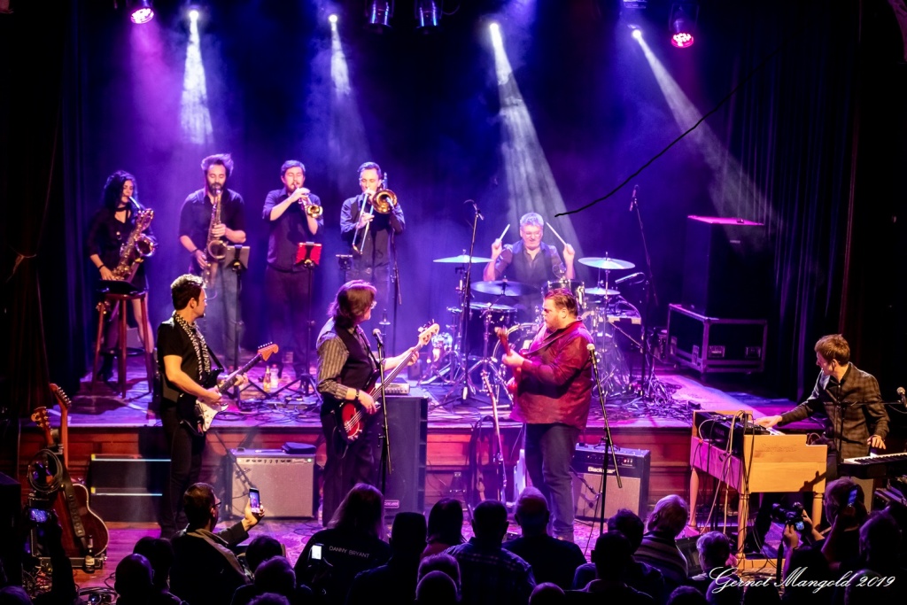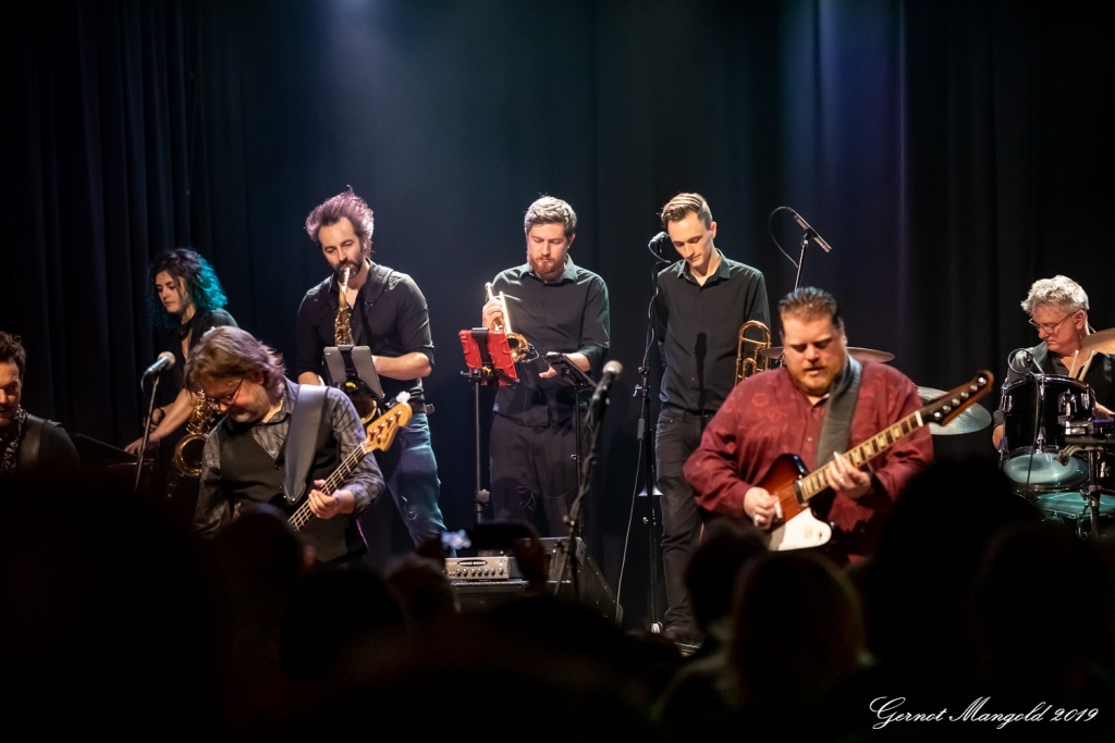 „Guntown“, schon im Adler ein Highlight, gewann durch die Bläsersektion noch einmal an Intensität. In einer losgelösten Version von „Unchained“ hatten alle Musiker ihren Solopart und wurden zu Recht vom Publikum mit Szenenapplaus bedacht.