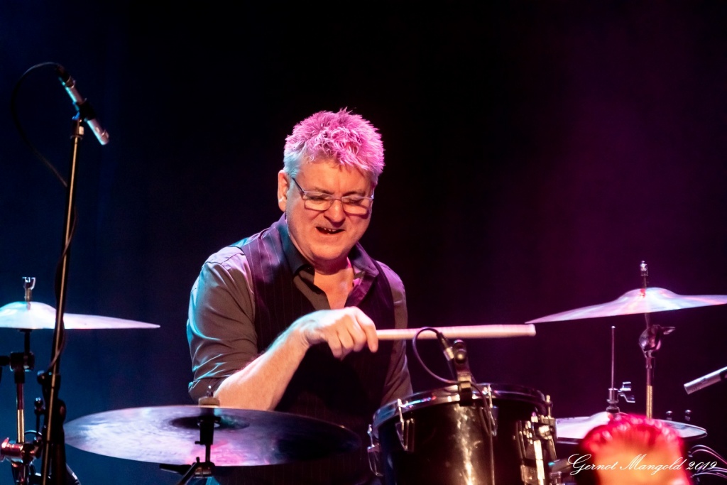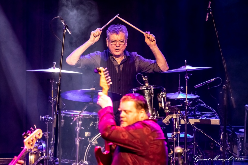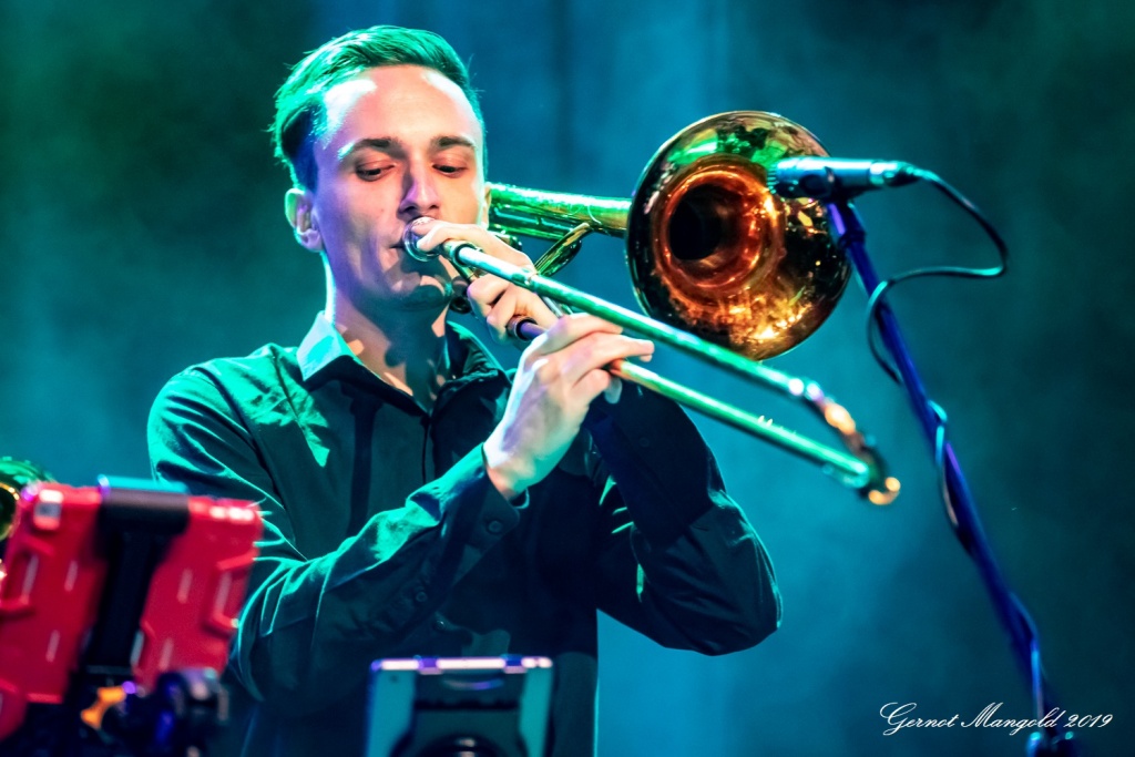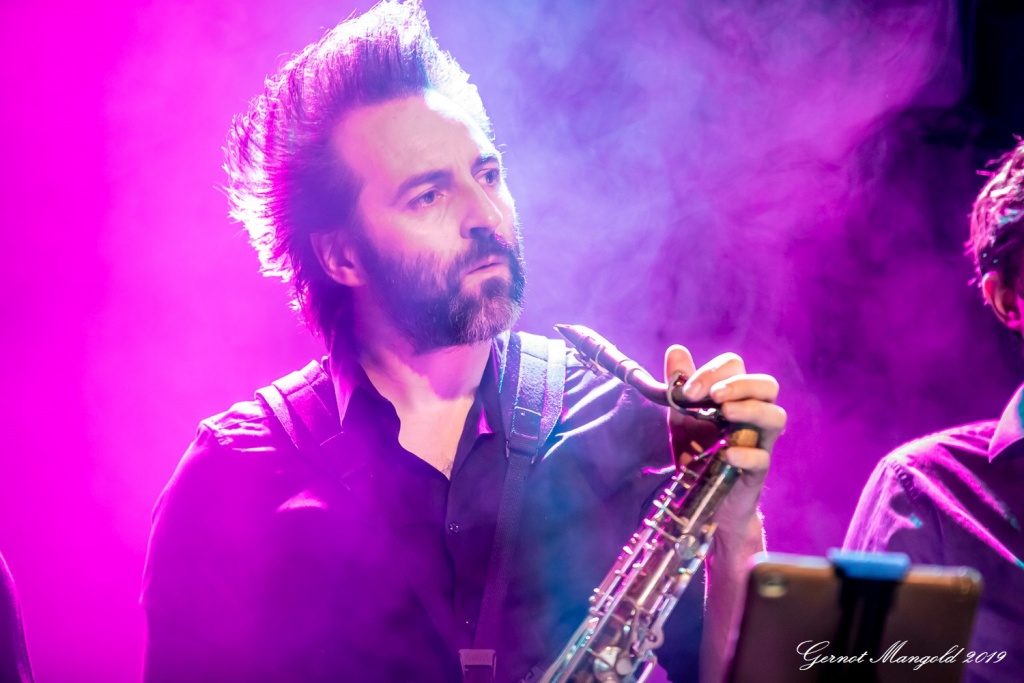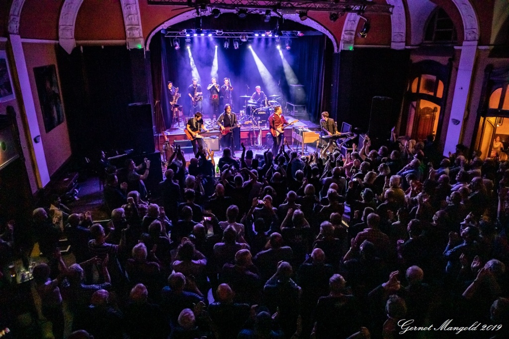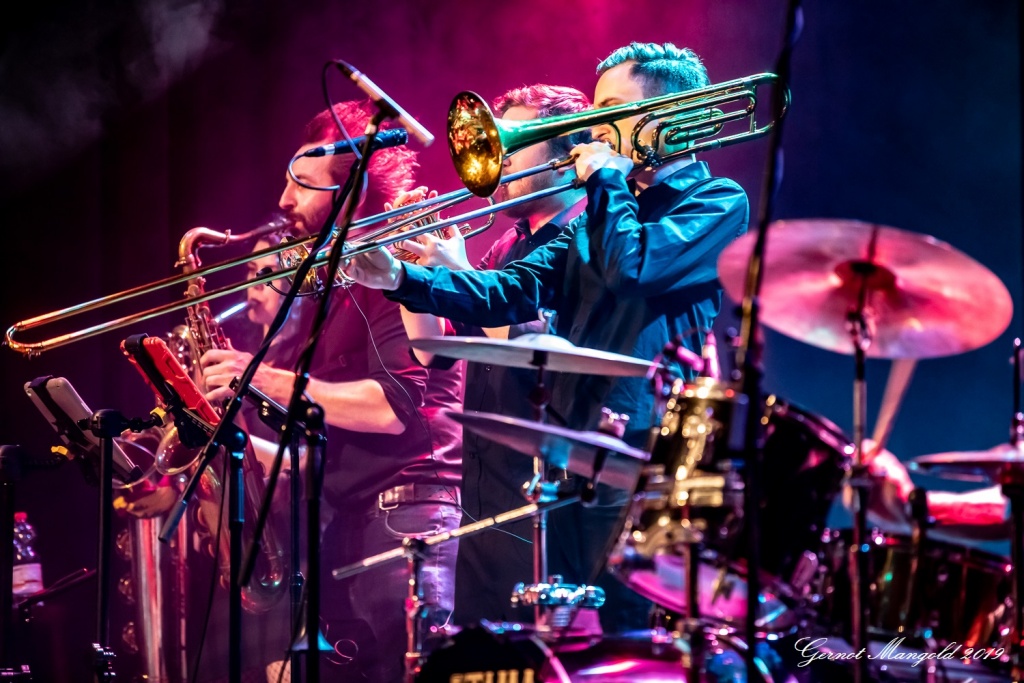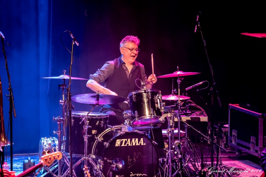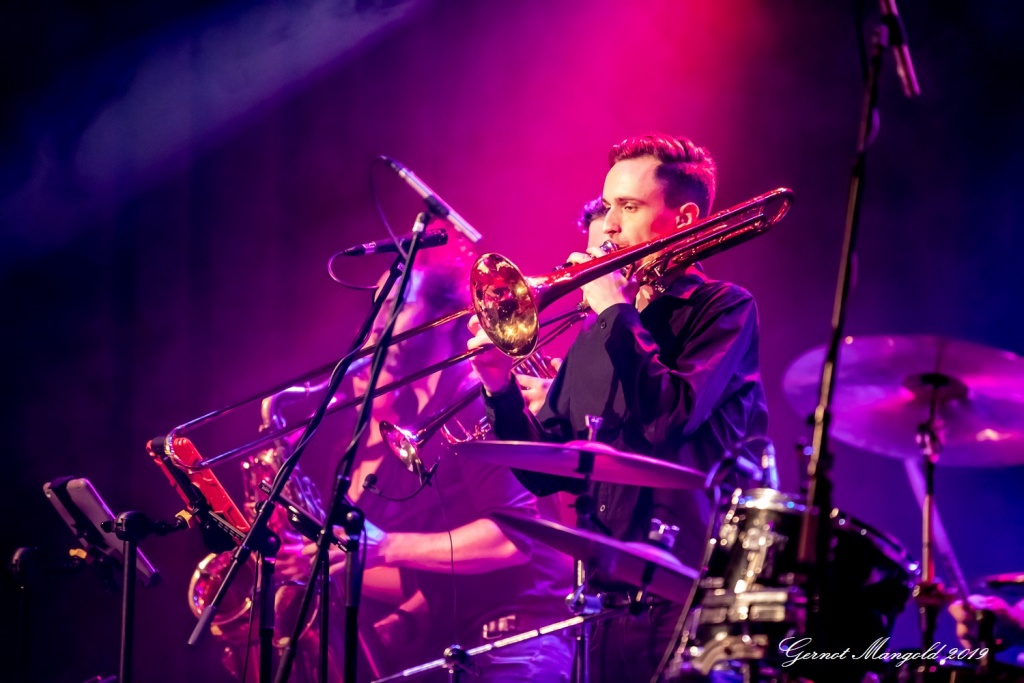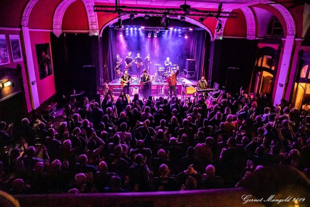 „Guntown“, schon im Adler ein Highlight, gewann durch die Bläsersektion noch einmal an Intensität. In einer losgelösten Version von „Unchained“ hatten alle Musiker ihren Solopart und wurden zu Recht vom Publikum mit Szenenapplaus bedacht.