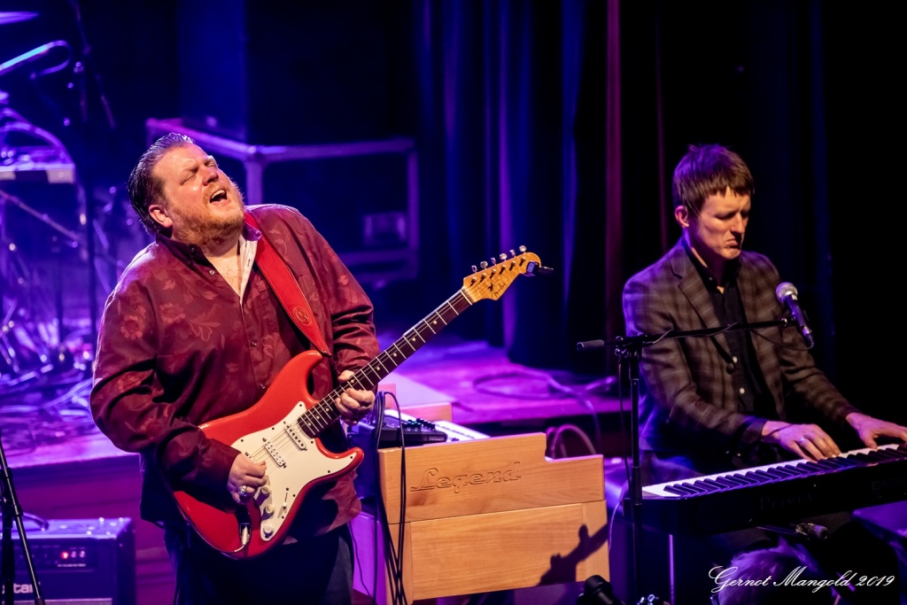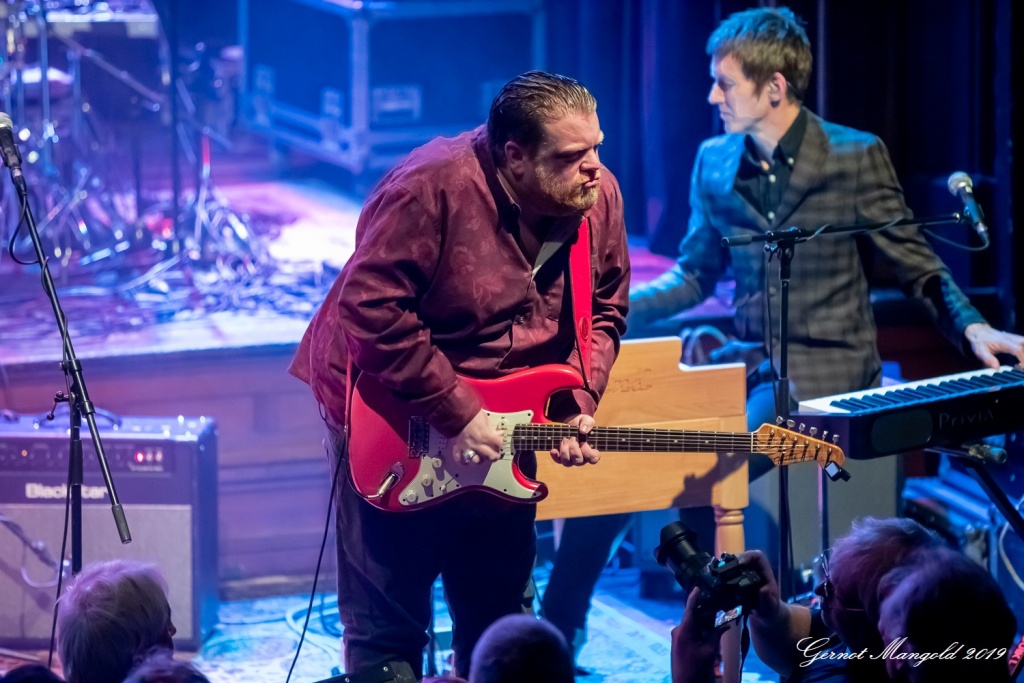 Danach war dann scheinbar Feierabend. Das Licht ging an, Sound kam vom Band aus den Boxen aber die meisten Zuschauer verweilten noch im Saal und applaudierten. Die ersten standen schon am Merchandisestand. Als es in der Halle wieder laut wurde und die Band unter ’stehenden Ovationen‘ noch einmal die Bühne betrat, um noch einen letzten starken Rausschmeißer, Bryant nun mit seiner Gibson Firebird slidend, drauf zu setzen. Dann war aber nach etwa 120 Minuten energiegeladenen Blues Rocks zumindest musikalisch Feierabend.